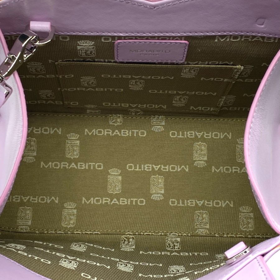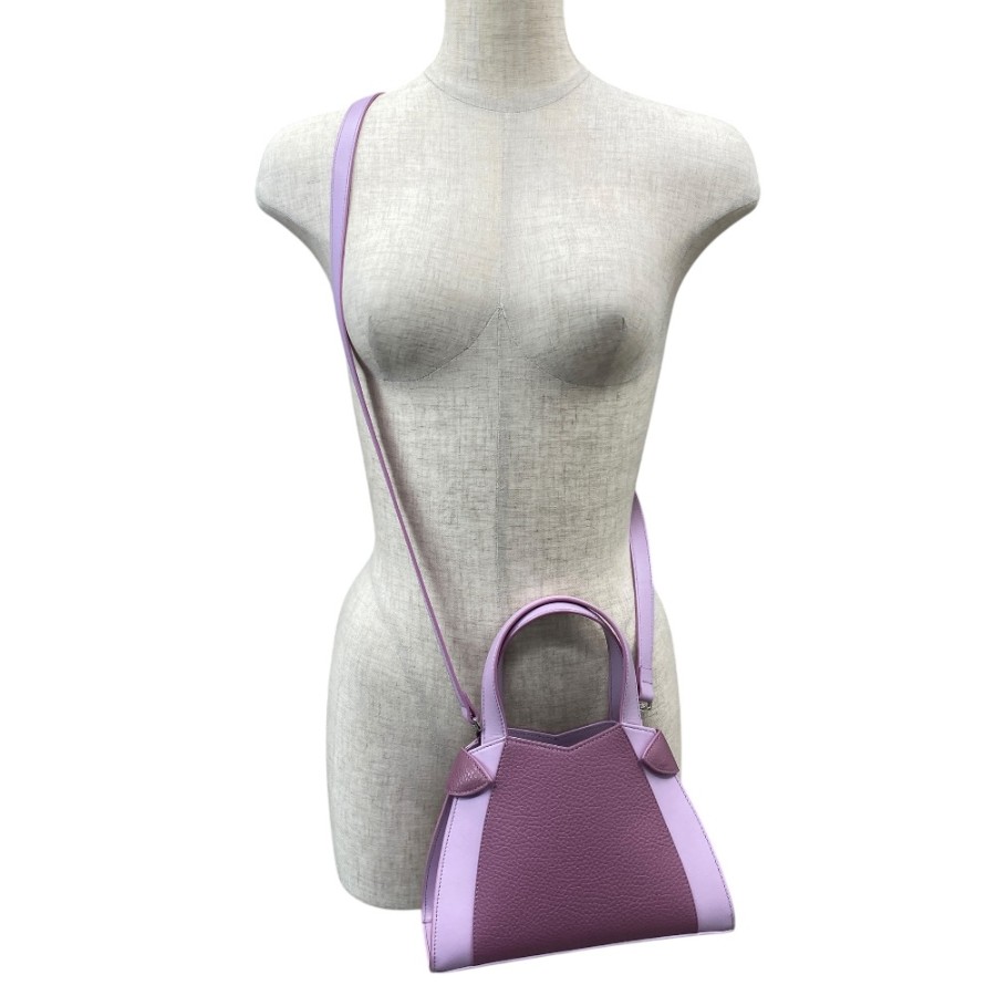 【ブランド】MORABITO モラビト【商品名】ステラ ミニ ハンドバッグ【商品番号】-【カラー】ラベンダーパープル/シルバー【サイズ】横:約22cm 縦:約24.5cm(持ち手含む) 奥行:約9cm【素材】カーフレザー【付属品】ショルダー紐/保存袋【ランク】SA(展示品レベル)【コメント】外面:薄汚れ(極小/写真参照) 中面:特筆すべきダメージなし【管理番号】0413b5220a商品情報