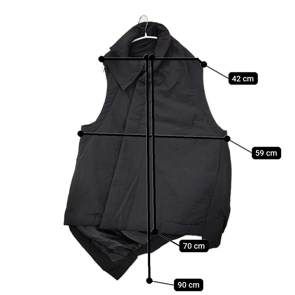 | 実寸サイズ | 肩幅:約42cm 着丈:約90cm 着丈(前):約70cm 身幅:約59cm 袖丈:約-cm ※採寸画像がある商品はハンガーに吊るした状態での計測のため、平置きでの採寸とは差が生じる場合がございます。平置きでの実寸サイズをご希望の場合は、ご購入前に必ずご質問ください。 ※記載以外のサイズが合わないことを理由とした返品はできませんので、 記載部分以外で実寸サイズの気になる箇所があれば必ず購入前にご質問ください。 |