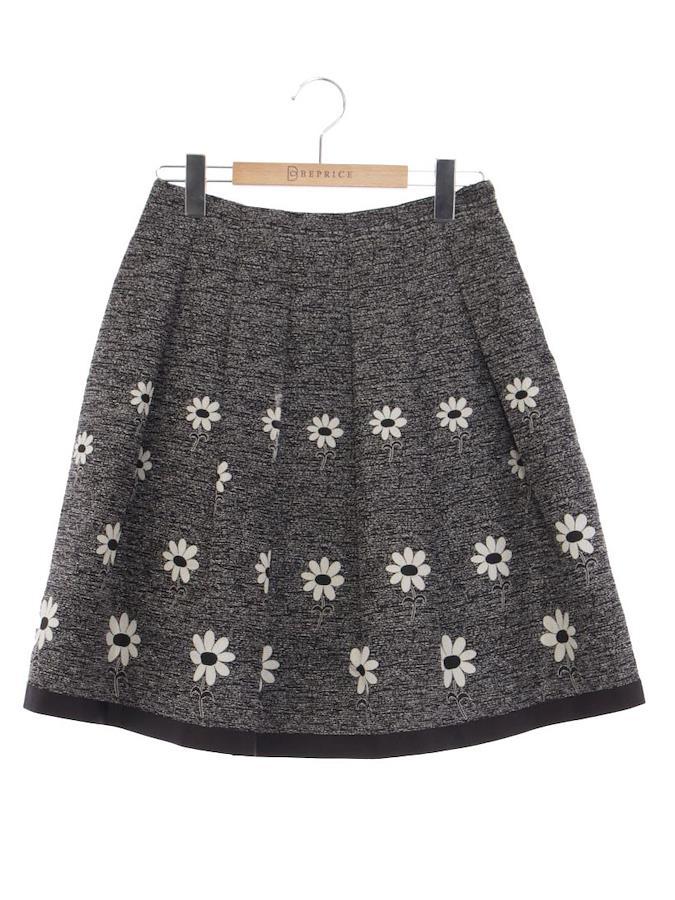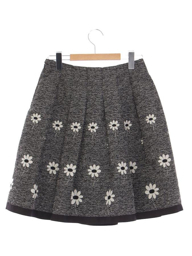 M's Gracie 527520 Skirt 38 Gray Flower Motif Flare [Used] IT4M12FE6T3N