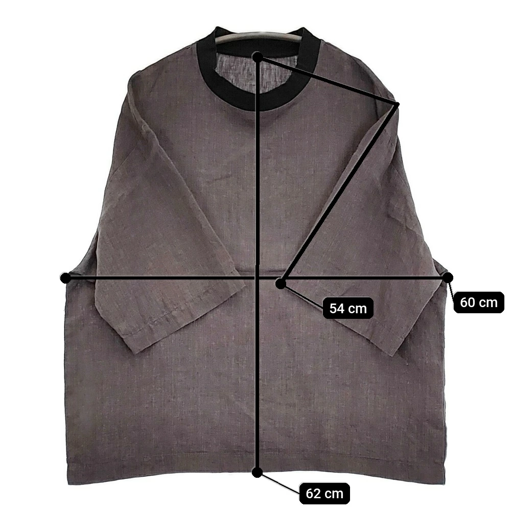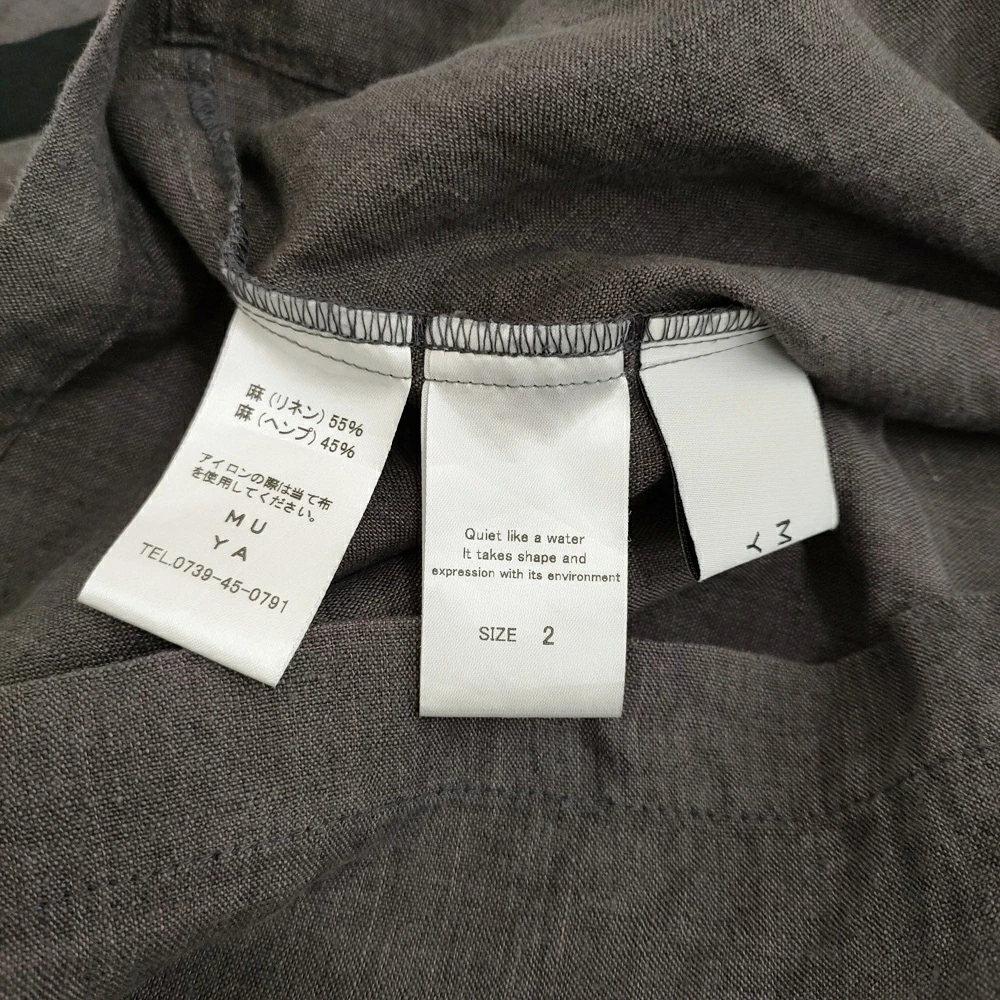 MUYA Three-Quarter Sleeve T-Shirt, Size 2, Regular Price: ¥12,100, Linen and Hemp Cut and Sew Blouse, Charcoal Gray, Women's, Pre-owned, Item No. 5-0809S