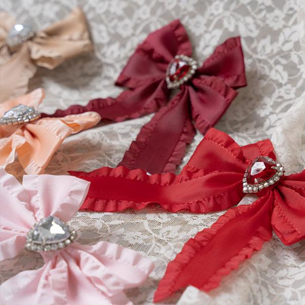 【デザイン】大好きな推しカラーをたっぷりとご用意したヘアクリップが登場♪Dear My Loveのヘアクリップでも多色の17色をご用意!自分の推しカラーを見つけてヘアアレンジやコーデに取り入れて推しアピールが出来ます!リボン中心にはキラキラと輝くかわいいハートビジュー付き!カラーによってハートビジューのお色が違うのもポイントです♪2個セットでのご用意なので、色々なアレンジができちゃう万能アイテムです。沢山カラーをご用意していますので、多数推しがいる方でも推しカラーを見つけて頂くことができます。可愛く大好きな推しにアピールしましょう♪【素材】フリル付サテンリボンを使用しています。裏にクリップが左右につけられるように付いているので、簡単にヘアアレンジができます♪【コーディネート】大きめサイズになっているので、いつものかわいいコーデに2個、ツインテールやハーフアップにしたり、ポニーテールで1つ付けるのもかわいい♪ブラウスの前立てに挟んで使うとブラウスリボンにも変身できちゃうので、アレンジが豊富で、自分だけの推しアピールができます♪トートバッグに挟んでアレンジもできるので、推しカラーで沢山大好きをアピールしてください!《生産国》中国