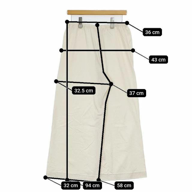 | 仕様 | フロント: なし ポケット:なし 透け感: ややあり 裾: ロックステッチ ウエスト調整: ゴム(紐あり) 裏地: なし |