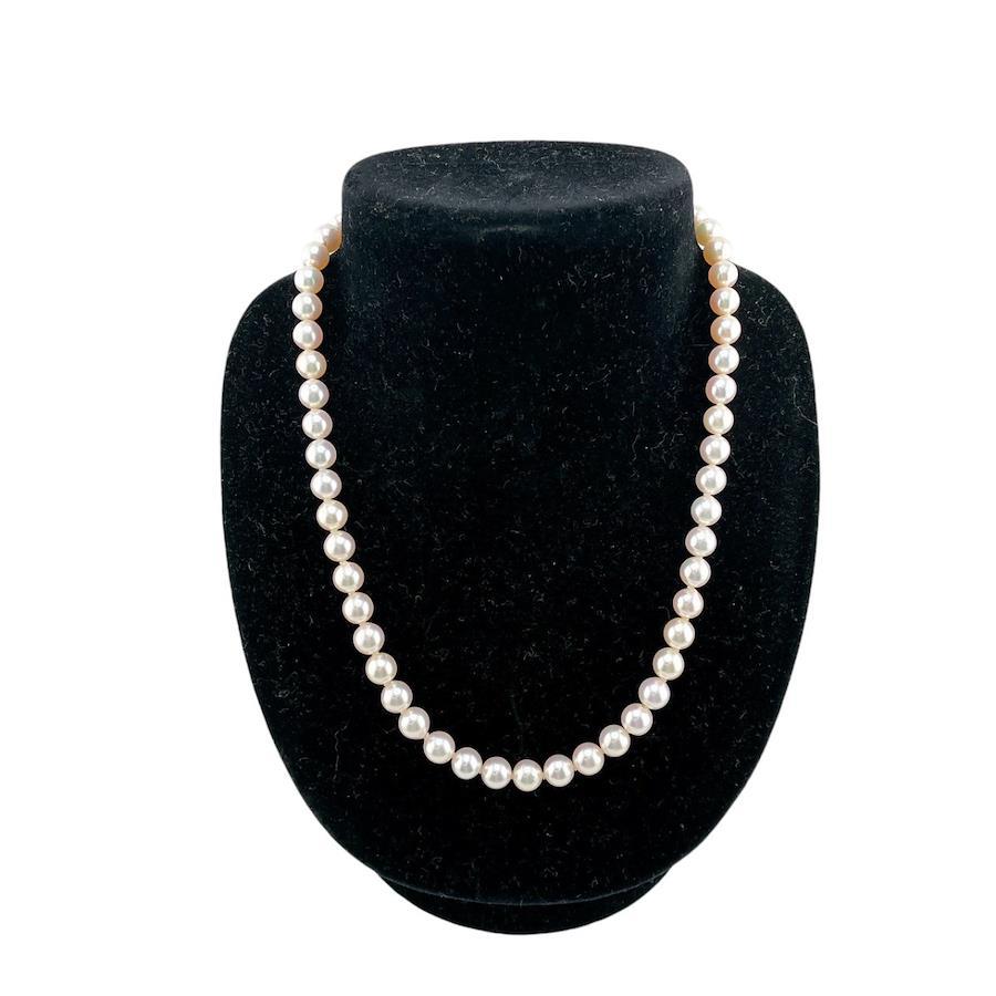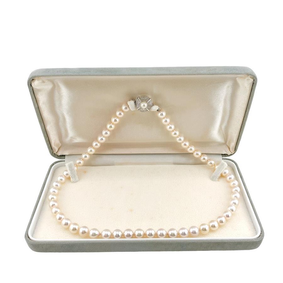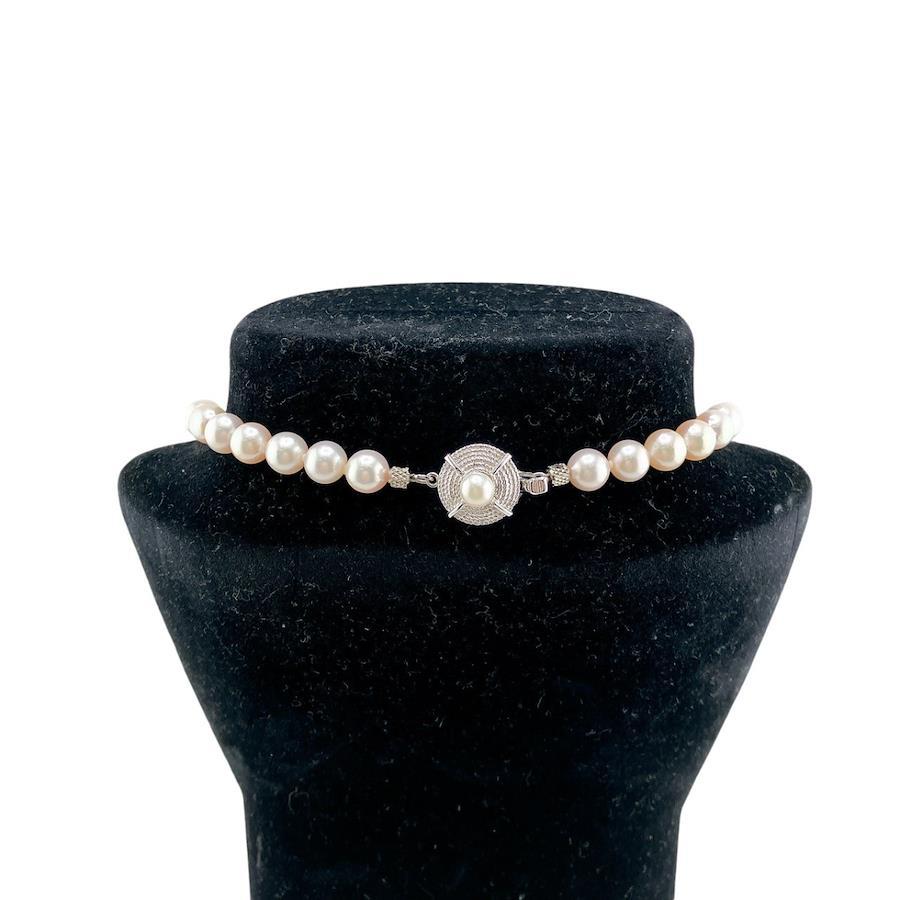 ☆デイリーにはもちろん、フォーマルな場面にも大活躍!淡いピンクのニュアンスが感じられるパールネックレスです♪
