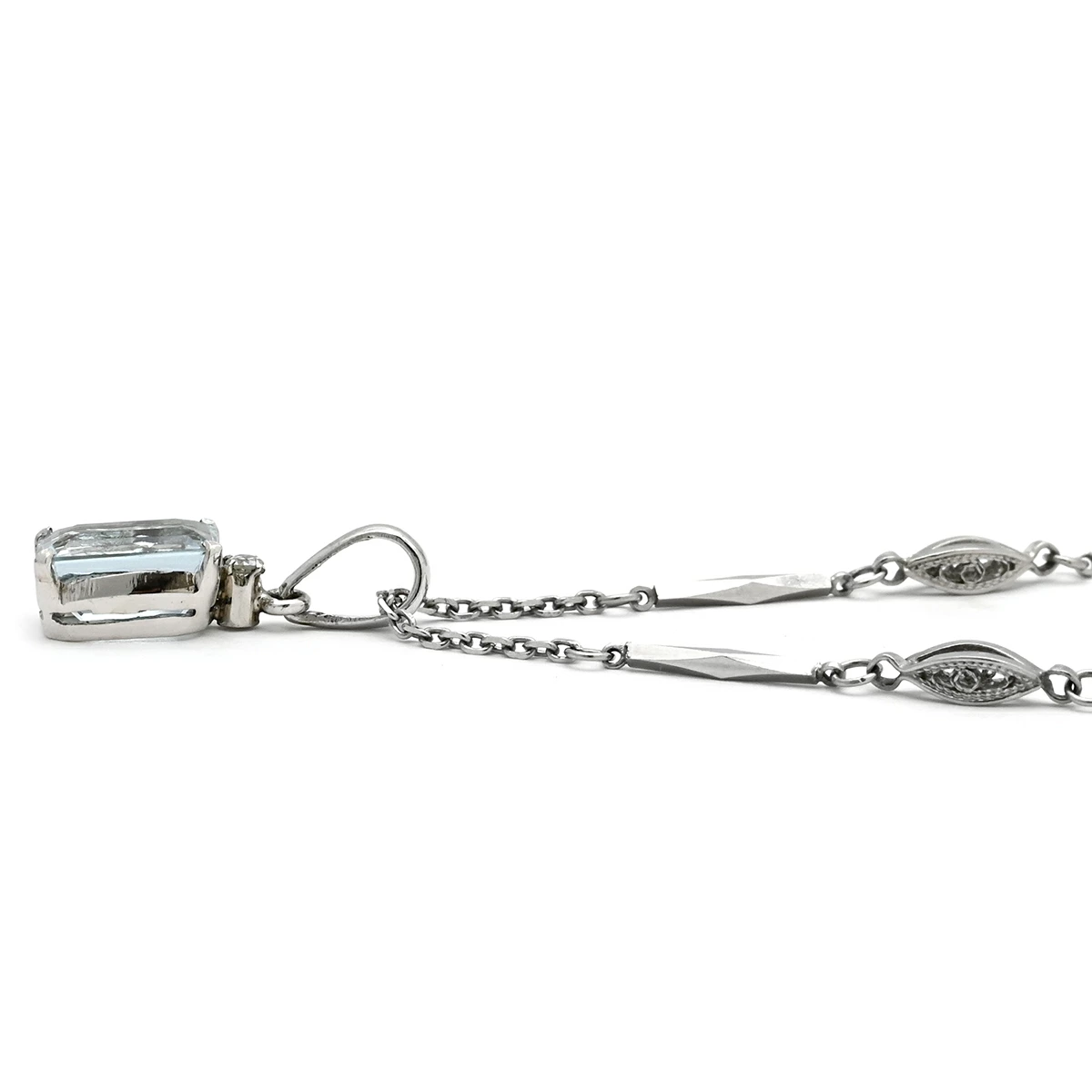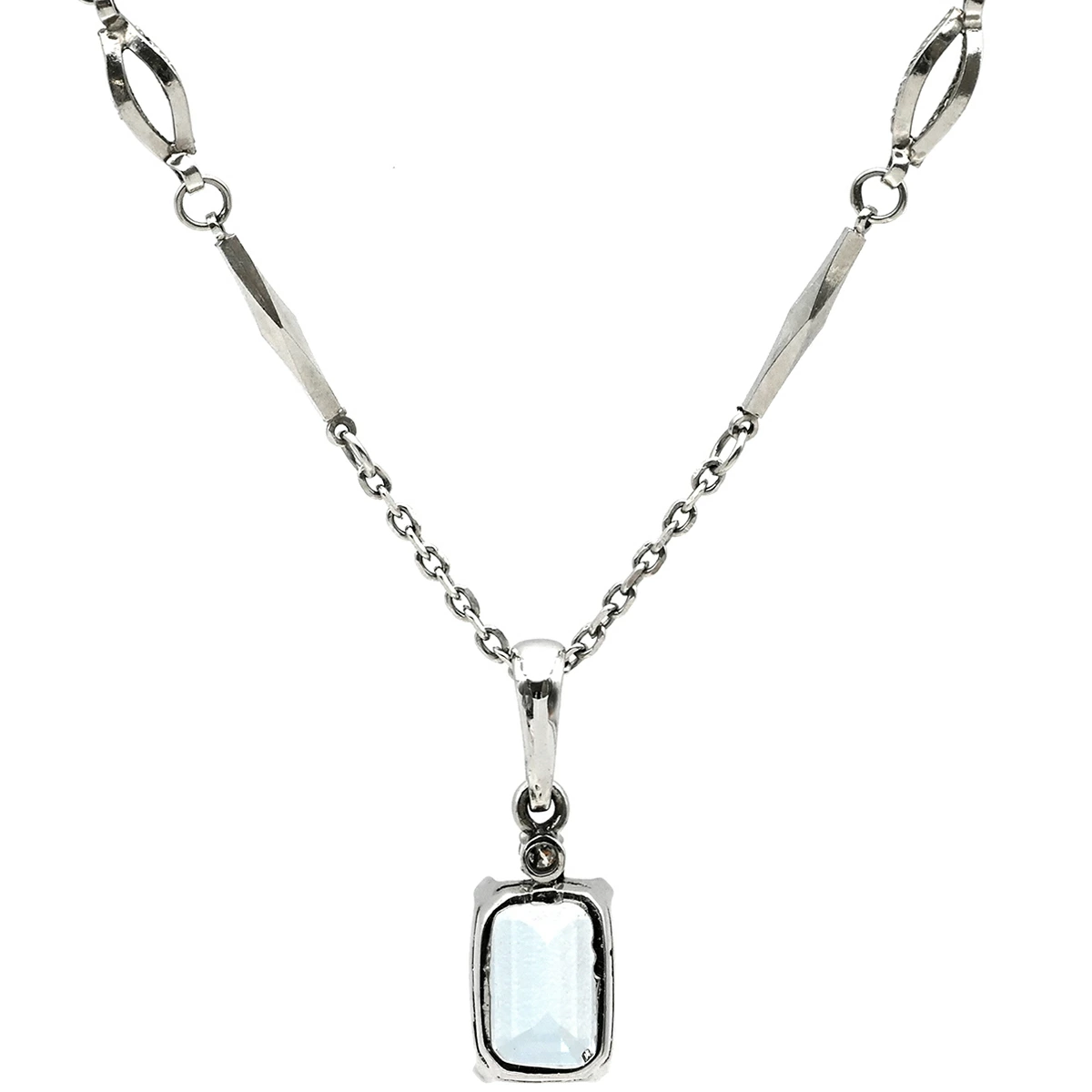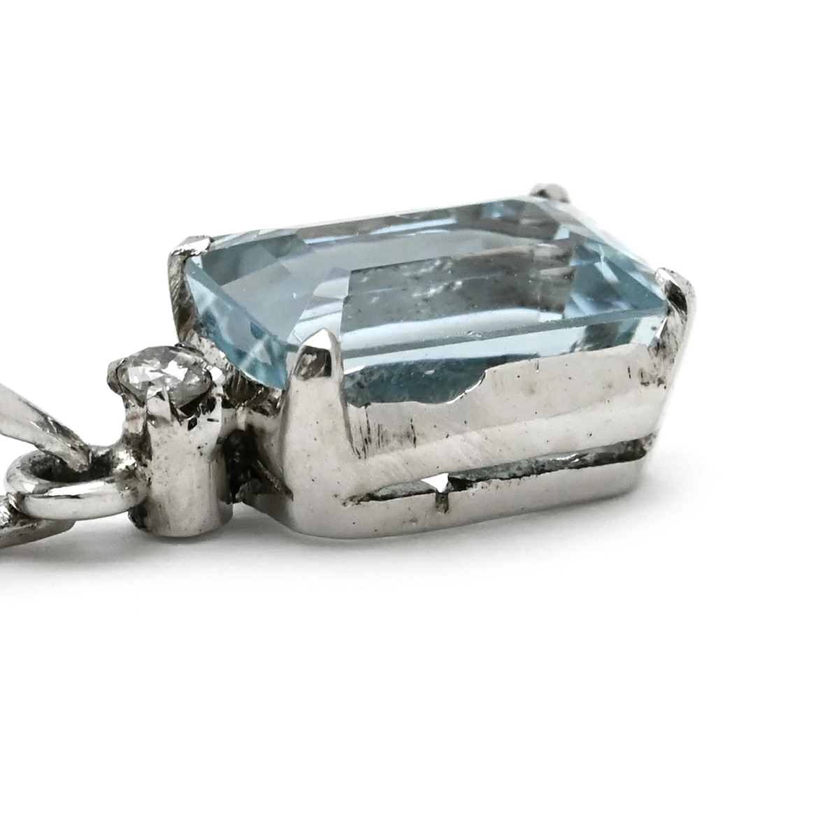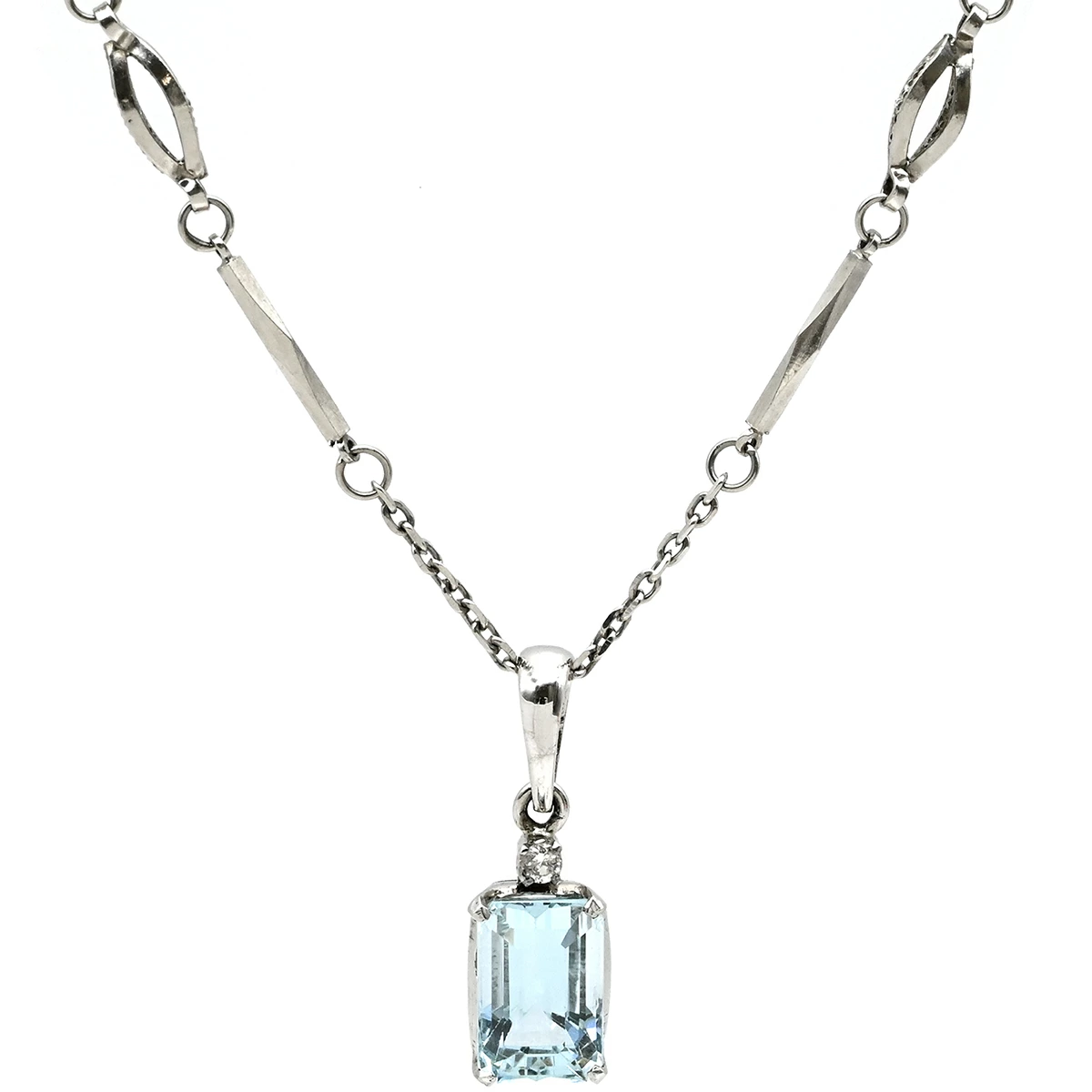 ノンブランド NON BRAND ネックレス Pt850 アクアマリン ライトブルー×プラチナシルバー 水色 アクアマリン スクエア バケットカット ダイヤ プラチナ - レディース 【中古】