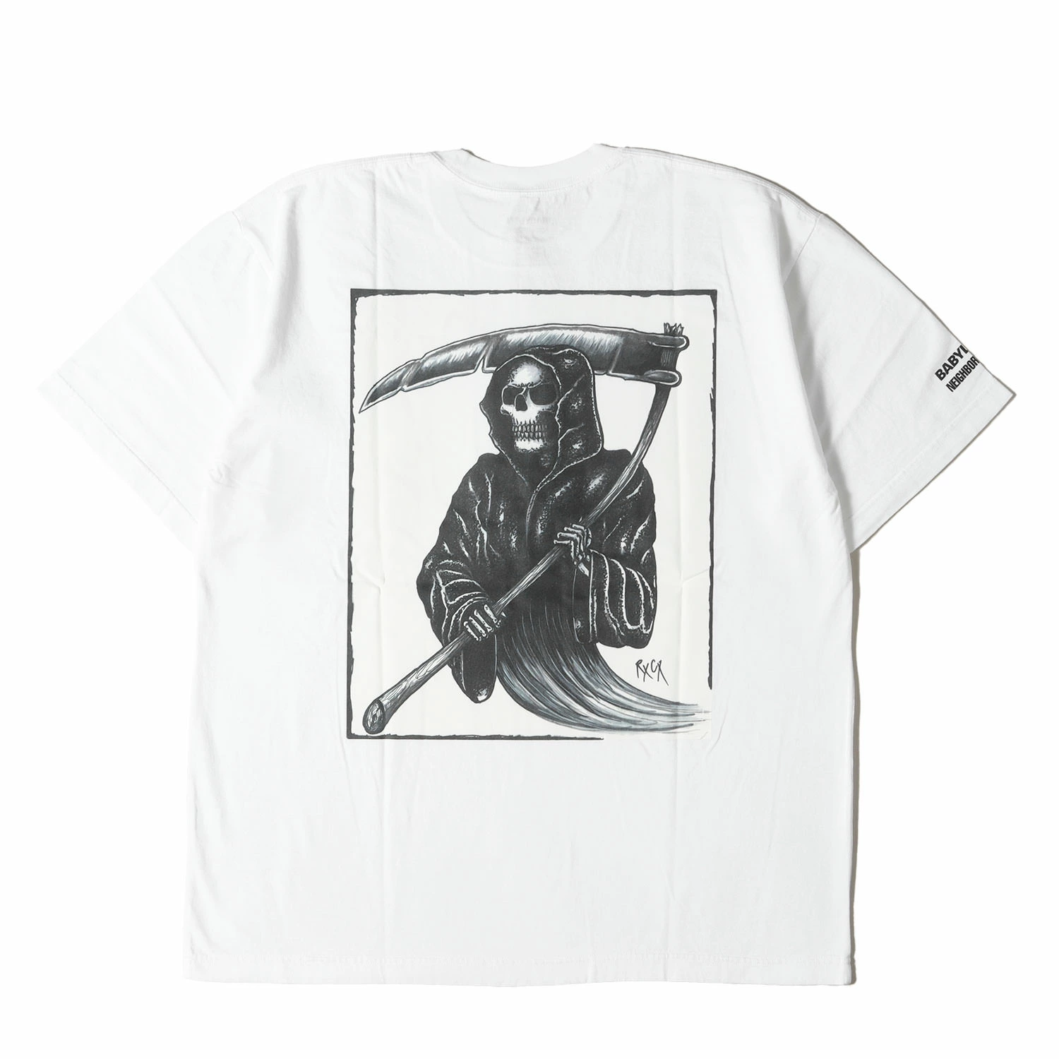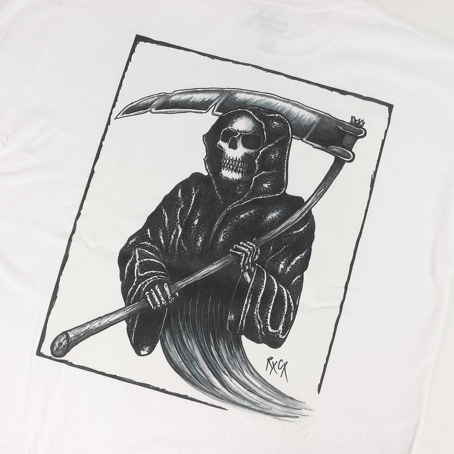 | 商品説明 | こちらはアメリカカリフォルニア初のブランド”BABYLON(バビロン)”とアーティスト”Ric Clayton”とのトリプルネームコラボアイテムになります。死神のアートワークを両面に落とし込んだ一枚です。 |