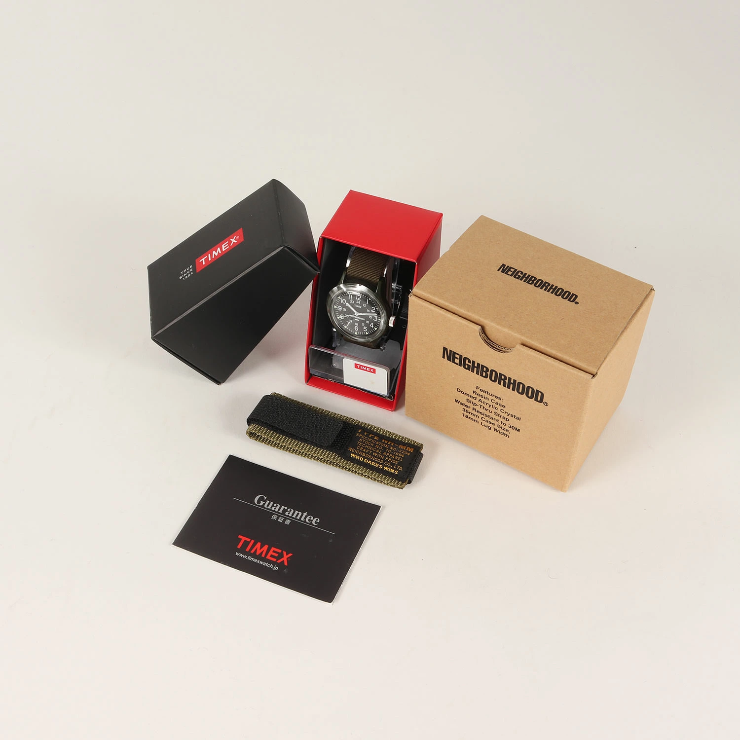 | 商品説明 | 時計ブランド“TIMEX”とのコラボシリーズです。こちらはベトナム戦争期の米軍仕様のミリタリーウォッチをモチーフにした“CAMPER”モデルになります。 |