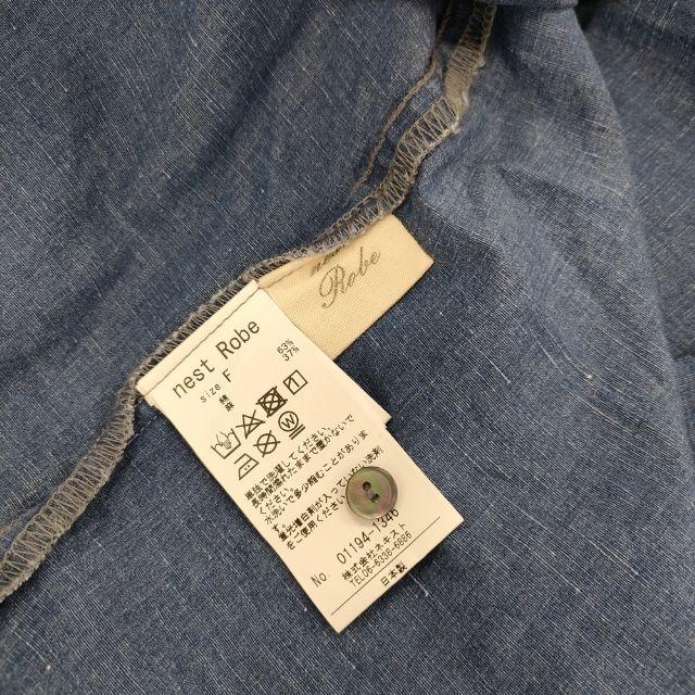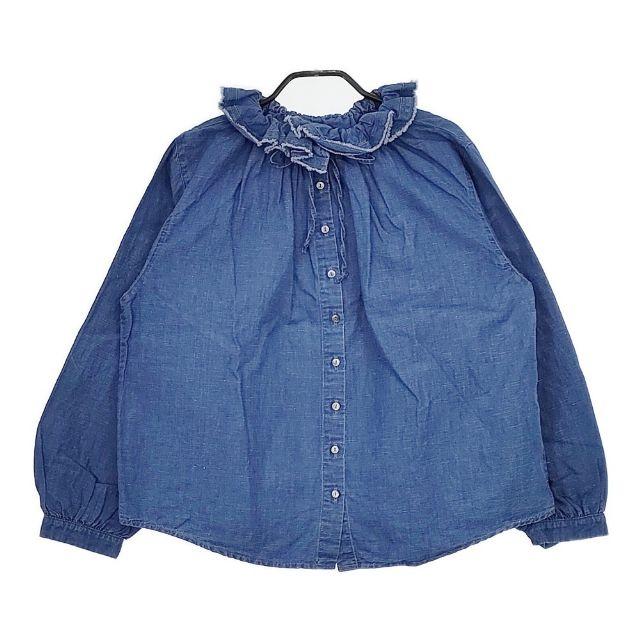 nest Robe 01194-1346 Frill Collar Cotton Linen Indigo Blouse/Shirt, Blue, Women's, Pre-owned, Item 5-0616M