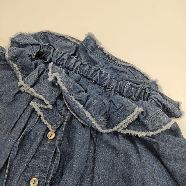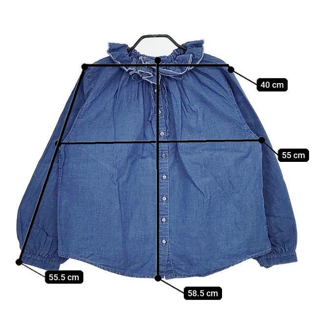 アイテムブラウス シャツ 01194-1346 フリルカラー コットンリネン インディゴ