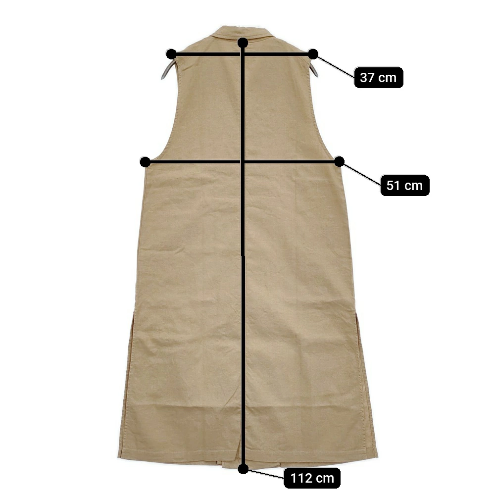 | 実寸サイズ | 肩幅:約37cm 着丈:約112cm 身幅:約51cm ※採寸画像がある商品はハンガーに吊るした状態での計測のため、平置きでの採寸とは差が生じる場合がございます。平置きでの実寸サイズをご希望の場合は、ご購入前に必ずご質問ください。 ※記載以外のサイズが合わないことを理由とした返品はできませんので、 記載部分以外で実寸サイズの気になる箇所があれば必ず購入前にご質問ください。 |