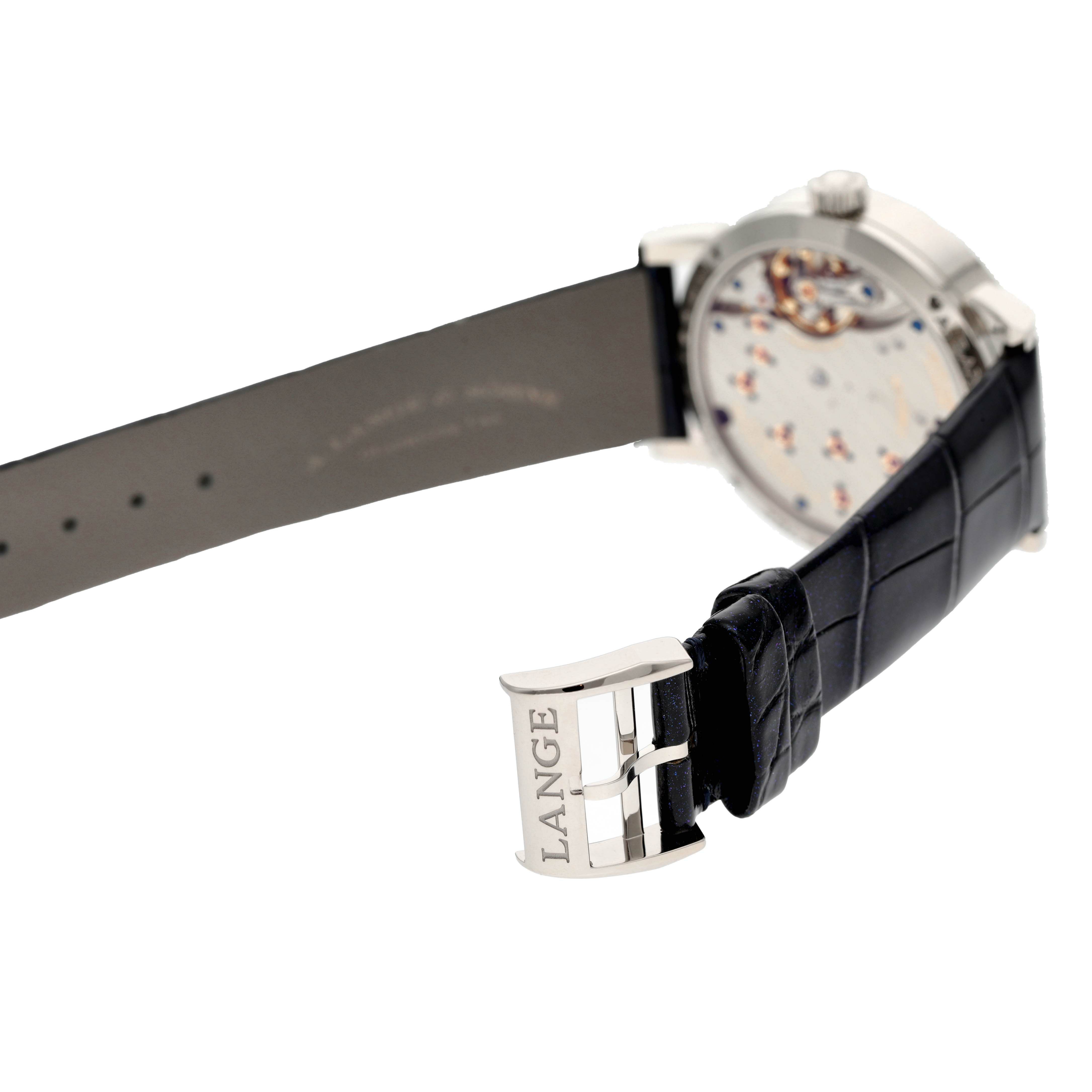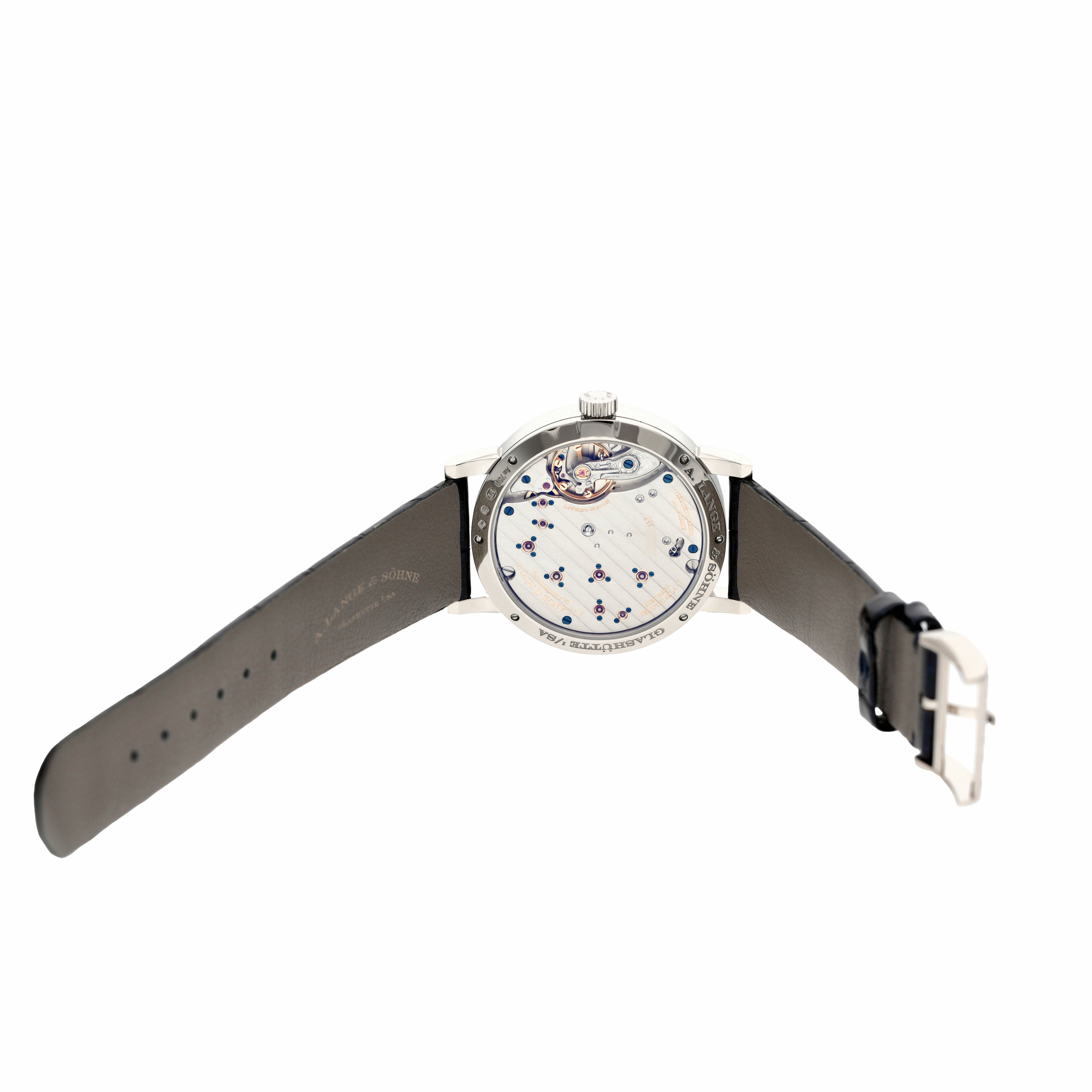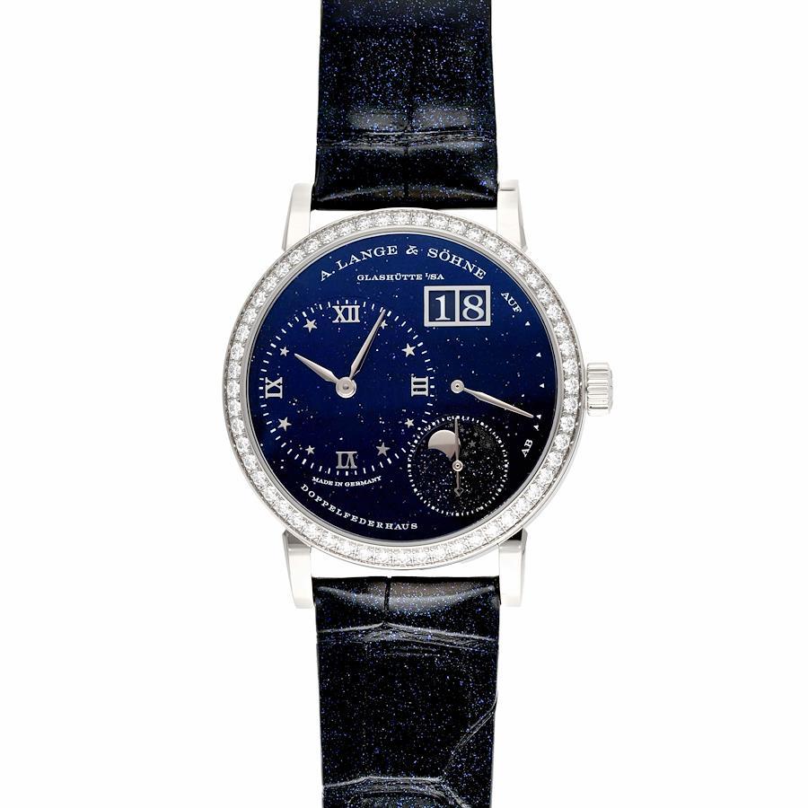 --------【商品スペック】--------お問合せコード:182.886ブランド:A.ランゲ&ゾーネシリーズ:リトル・ランゲ1・ムーンフェイズケース素材:ホワイトゴールドベルト素材:レザーダイアルカラー:ブルー/ロディウムムーブメント:手巻き(Cal.L121.2)ケースサイズ:36.8mm(リューズ除く)防水:30mガラス:サファイアガラス仕様:アウトサイズデイト, ムーンフェイズ表示, パワーリザーブ表示付属品:純正BOX、国際保証書(2025年11月)