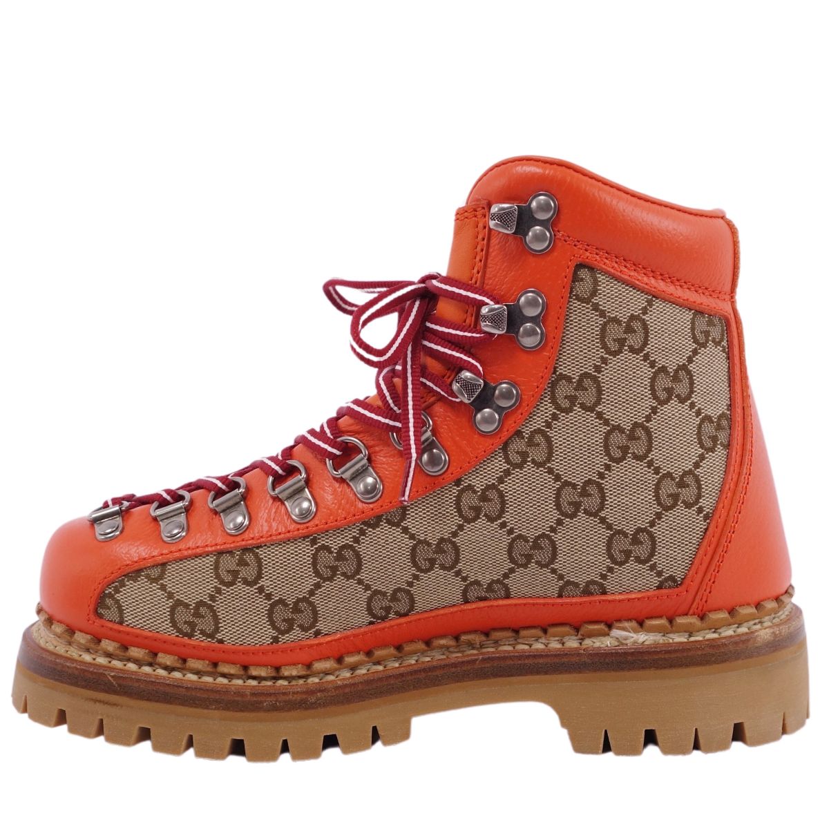 ■商品名グッチ ザノースフェイス GUCCI THE NORTH FACE 21AW ブーツ ショートブーツ GGキャンバス シェリーライン シューズ 靴 レディース イタリア製 オレンジ サイズ36(23cm相当)■状態説明・上質なカーフレザー、キャンバス地を使用した、GUCCI THE NORTH FACEのショートブーツです♪・ボディにGGキャンバス、 THE NORTH FACEのロゴにシェリーラインを用いた一足です◎・イタリア製・新古品(未使用品)です。【季節感:オールシーズン】【付属品:箱/保存袋】■素材カーフレザー/キャンバス■カラーオレンジ■表記サイズ36(23cm相当)■実寸サイズアウトソール:約27cm幅:約9.5cm筒高さ:約13cm■状態ランクSS 未使用品・新古品■店舗管理番号cf02oo-rm05c14519