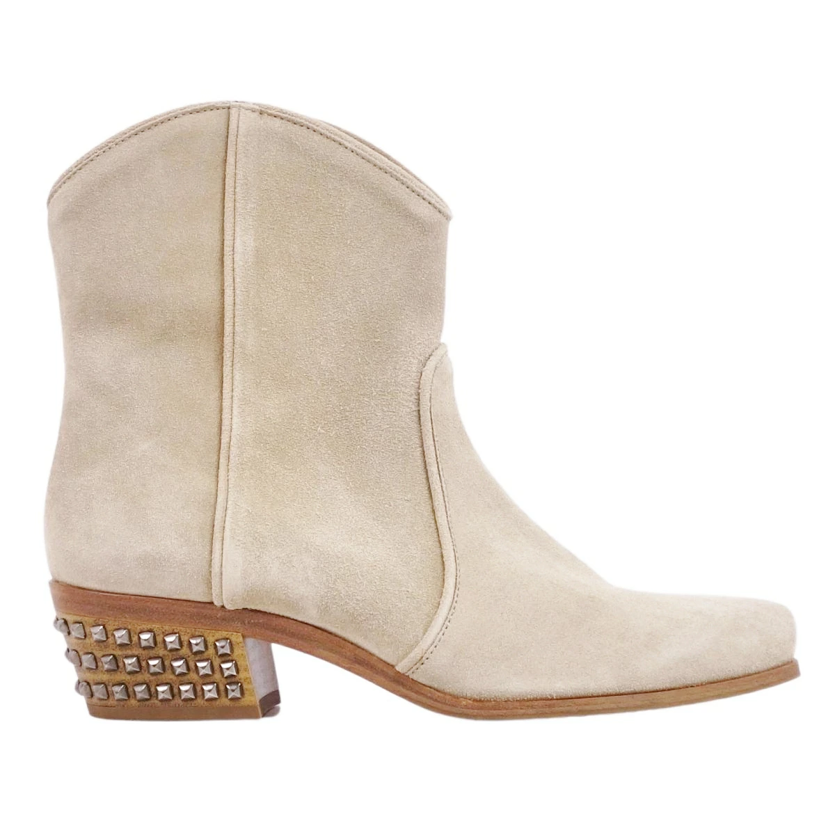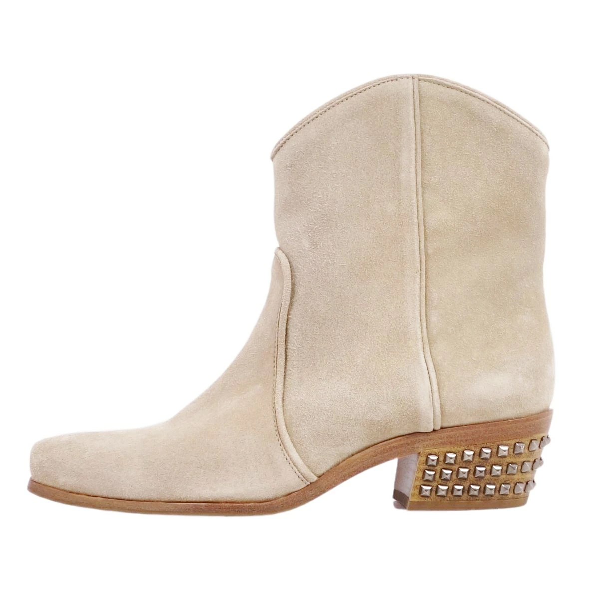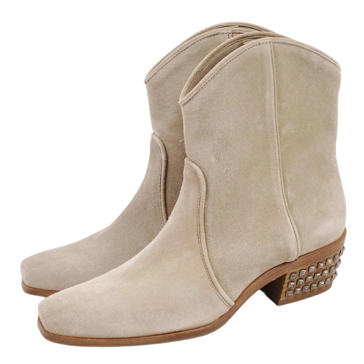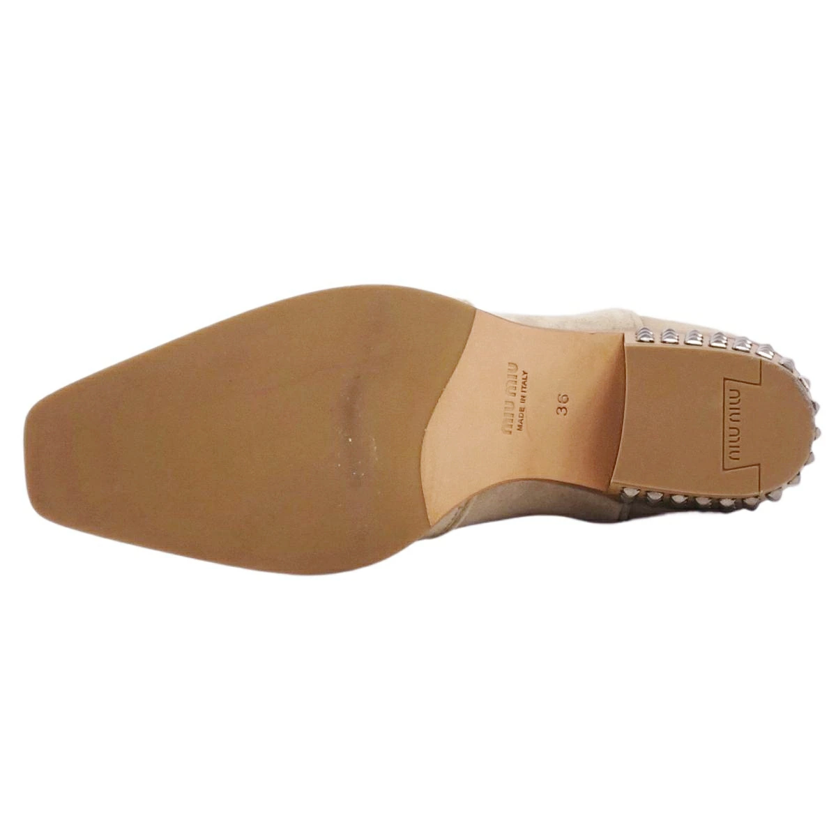 [New and Used] Miu Miu Boots Short Boots Heel Suede Leather Studs Shoes Women's 36 (equivalent to 23cm) Beige [Used]