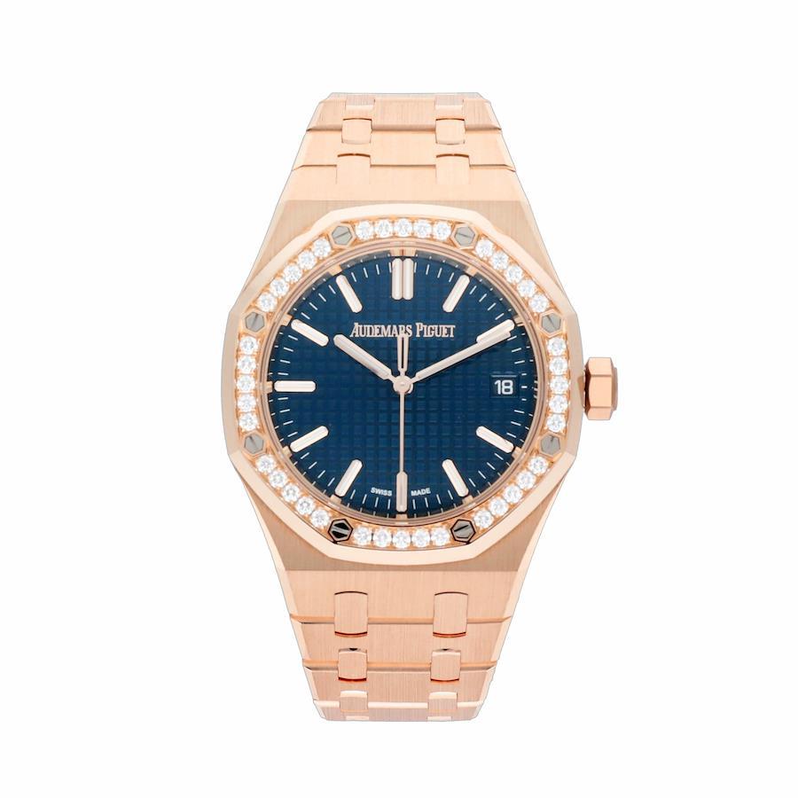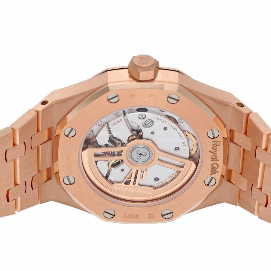 --------【商品スペック】--------お問合せコード:15551OR.ZZ.1356OR.05ブランド:オーデマ・ピゲシリーズ:ロイヤルオークケース素材:ピンクゴールドベルト素材:ピンクゴールドダイアルカラー:ナイトブルームーブメント:自動巻(Cal.5900)ケースサイズ:37mm(リューズ除く)防水:50mガラス:サファイアガラス仕様:日付表示、バックスケルトン、3針付属品:純正BOX、国際保証書保証:当店購入日より3年保証メーカー希望価格:¥9,900,000-込