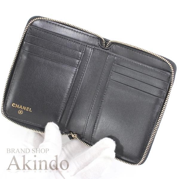 シャネルのキルティング ラウンドジップ 二つ折り財布です。