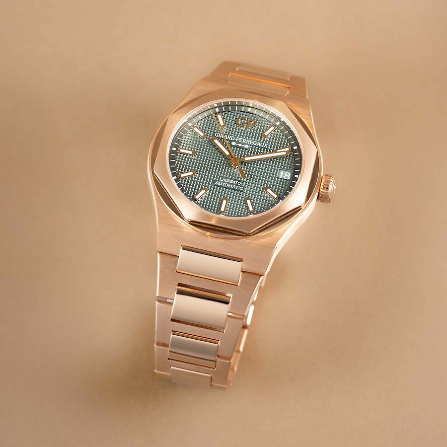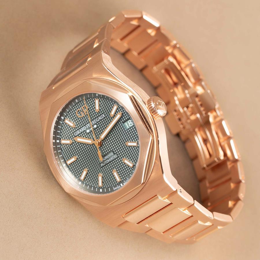 --------【商品スペック】--------お問合せコード:81010-52-3333-1CMブランド:ジラール・ぺルゴシリーズ:ロレアートケース素材:ピンクゴールドベルト素材:ピンクゴールドダイアルカラー:セージグリーンムーブメント:自動巻(Cal.GP01800)ケースサイズ:42mm(リューズ除く)防水:100mガラス:サファイアガラス仕様:日付表示、バックスケルトン、3針付属品:純正BOX、国際保証書保証:当店購入日より3年保証メーカー参考価格:¥7,304,000-税込
