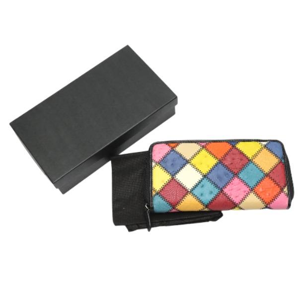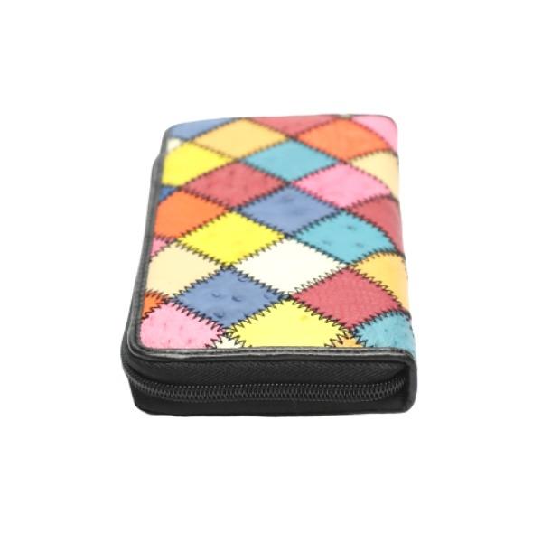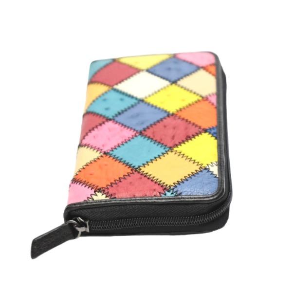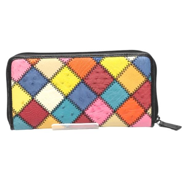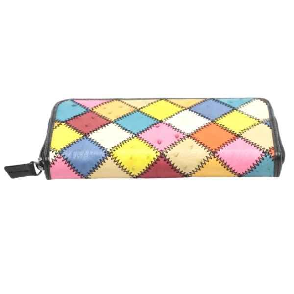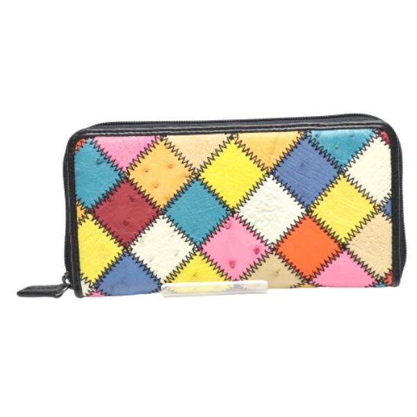 ☆パッチワークのオーストリッチL字ファスナー長財布!豊富なカード用ポケットやセパレートされたお札入れなど収納力がとても高いお品です♪