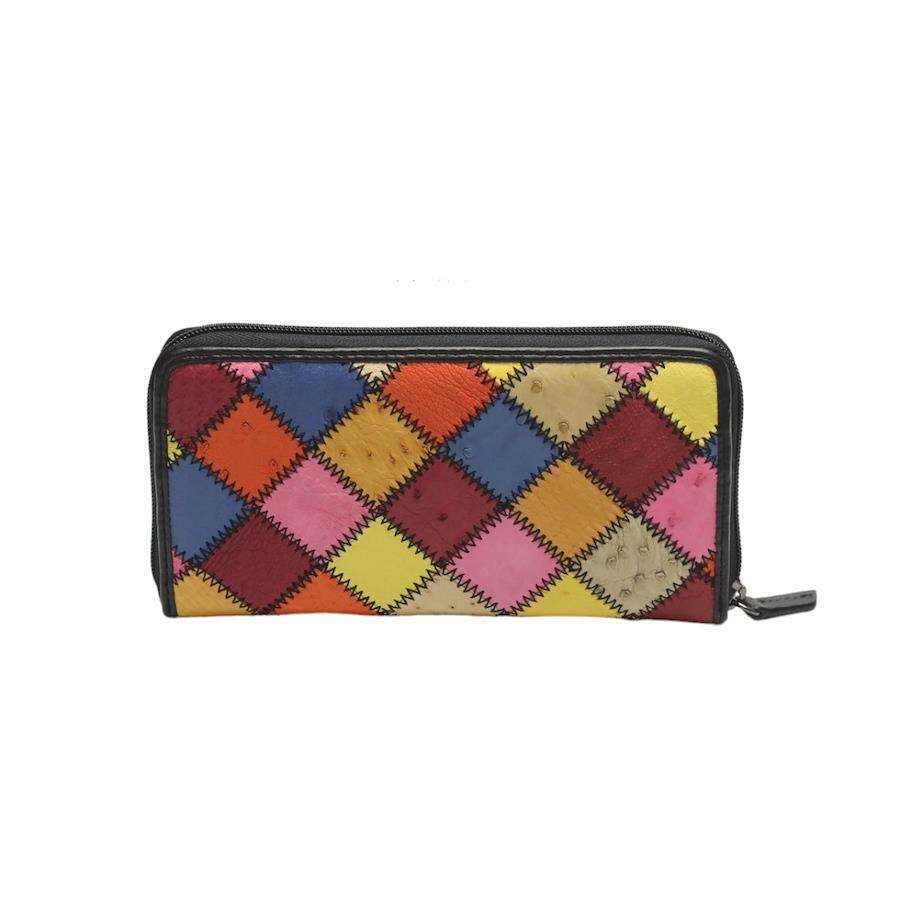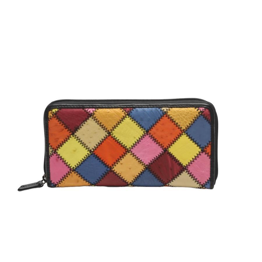 ☆パッチワークのオーストリッチL字ファスナー長財布!豊富なカード用ポケットやセパレートされたお札入れなど収納力がとても高いお品です♪
