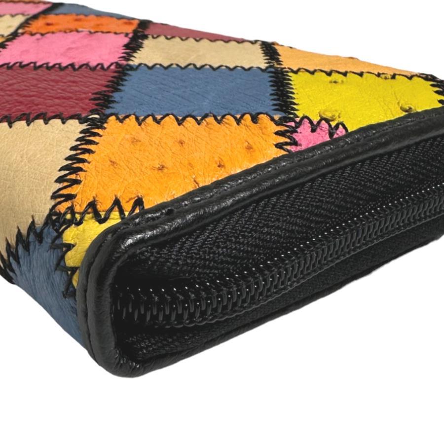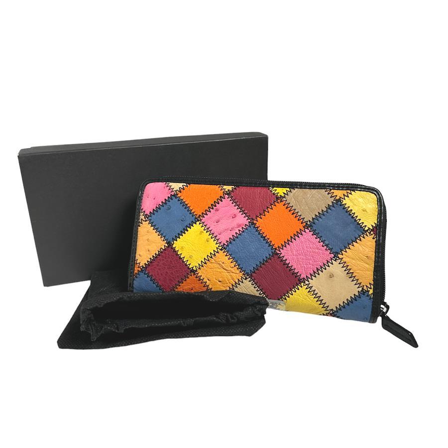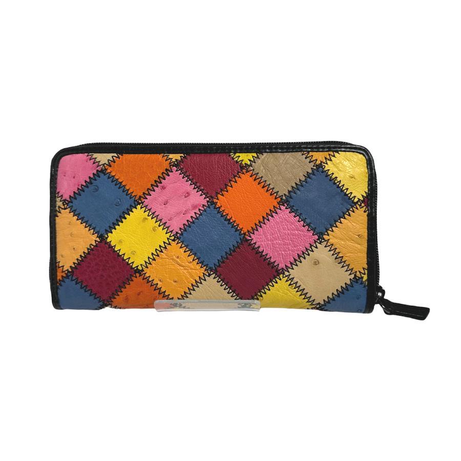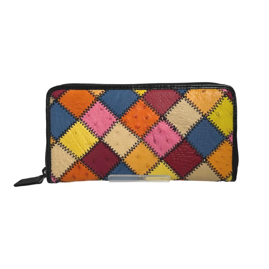 ☆パッチワークのオーストリッチラウンドファスナー長財布!豊富なカード用ポケットやセパレートされたお札入れなど収納力がとても高いお品です♪