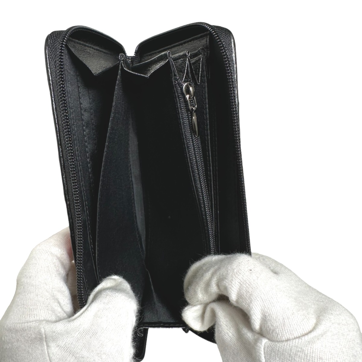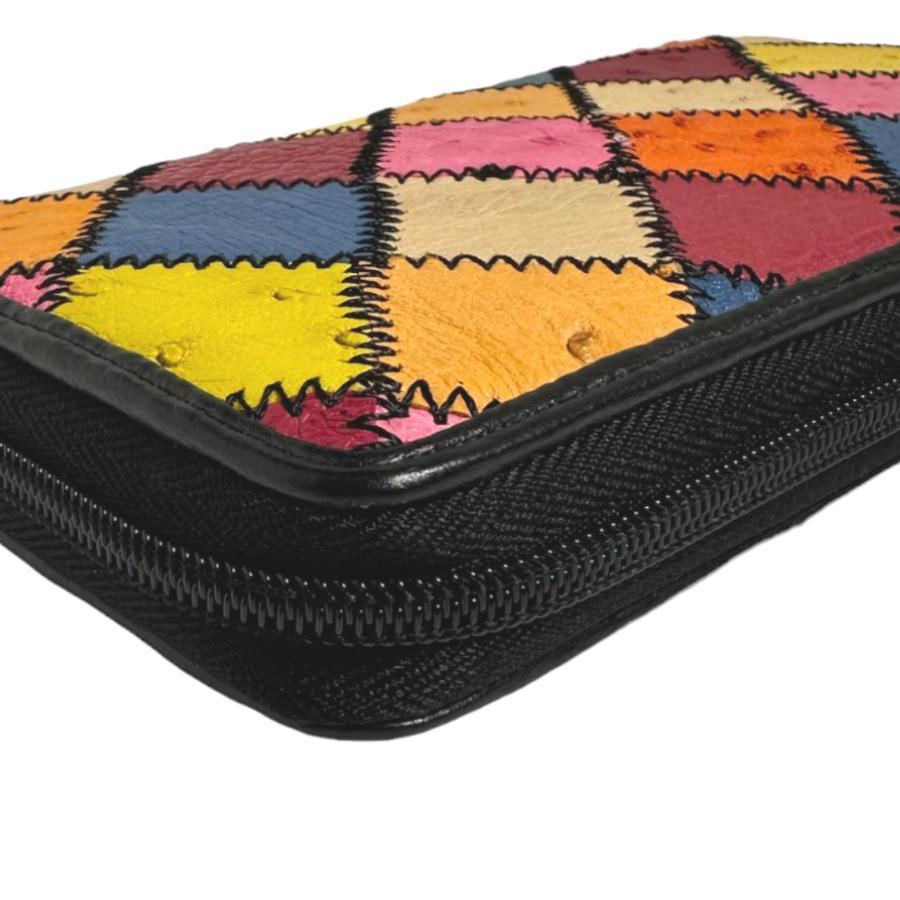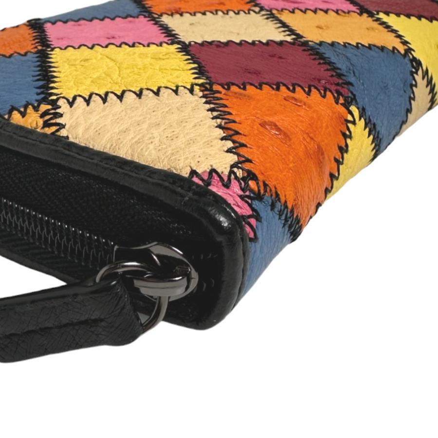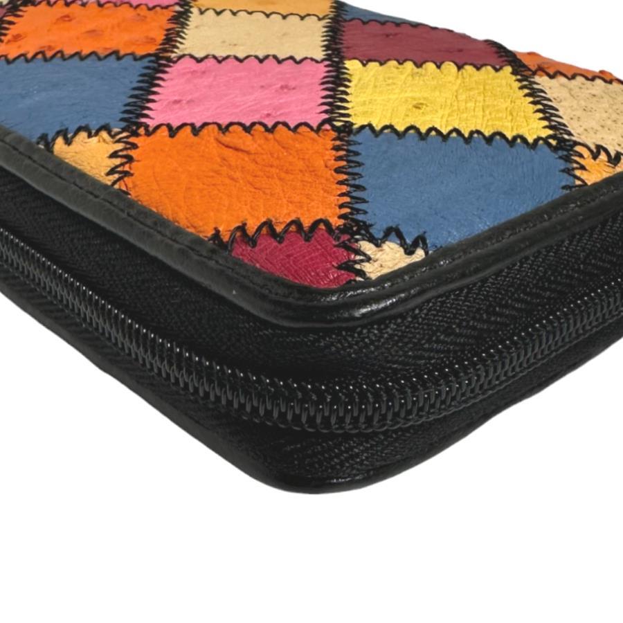 ☆パッチワークのオーストリッチラウンドファスナー長財布!豊富なカード用ポケットやセパレートされたお札入れなど収納力がとても高いお品です♪