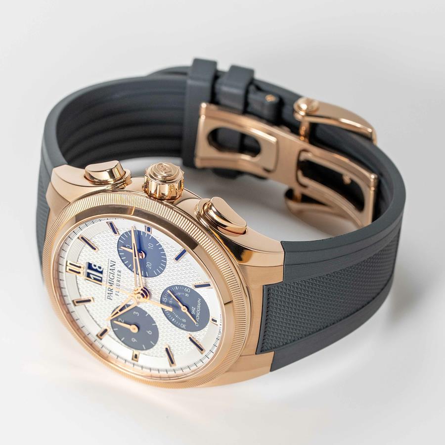 --------【商品スペック】--------お問合せコード:PFC903-2020001-400181ブランド:パルミジャーニ・フルリエシリーズ:トンダGTクロノグラフケース素材:ローズゴールドベルト素材:グレーラバーダイアルカラー:シルバームーブメント:自動巻(Cal.PF071)ケースサイズ:42mm(リューズ除く)防水:100mガラス:サファイアガラス仕様:日付表示、バックスケルトン、クロノグラフ付属品:純正BOX、国際保証書保証:当店購入日より3年保証メーカー参考価格:¥7,557,000-税込