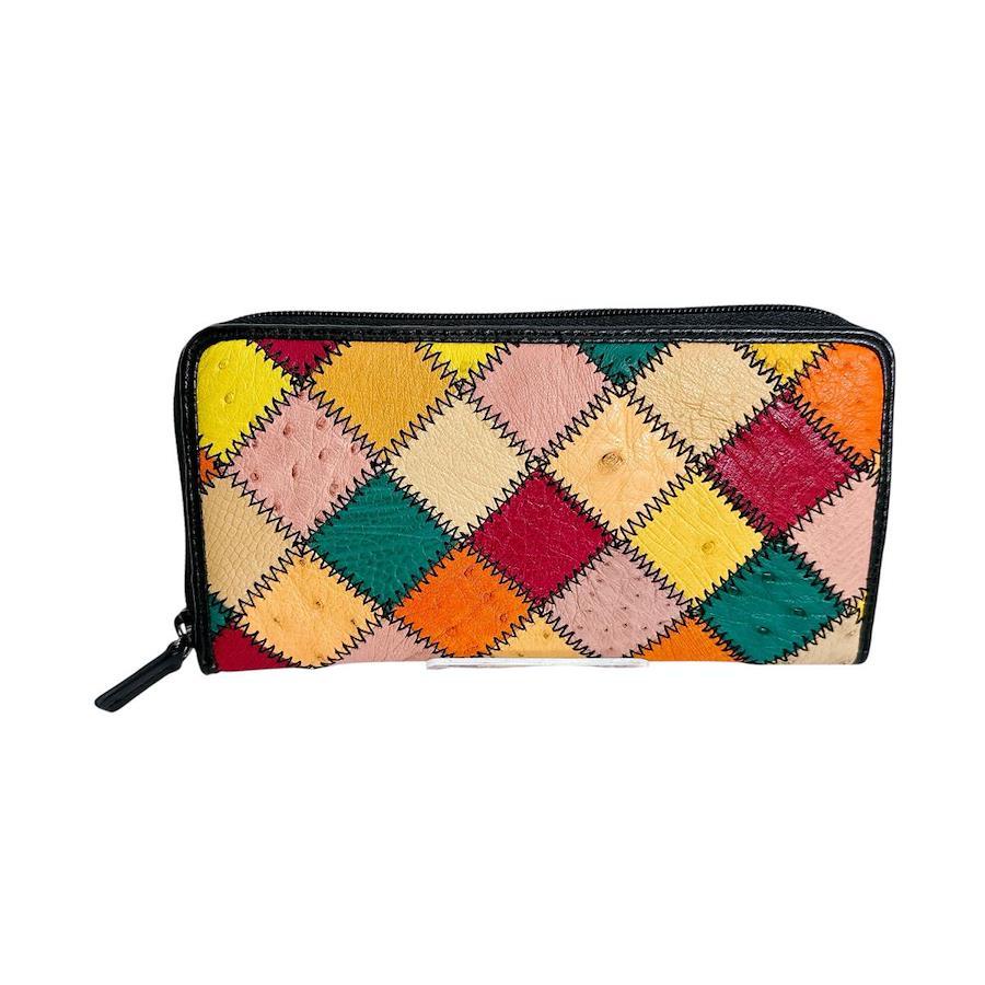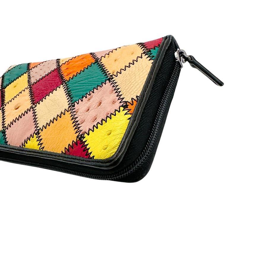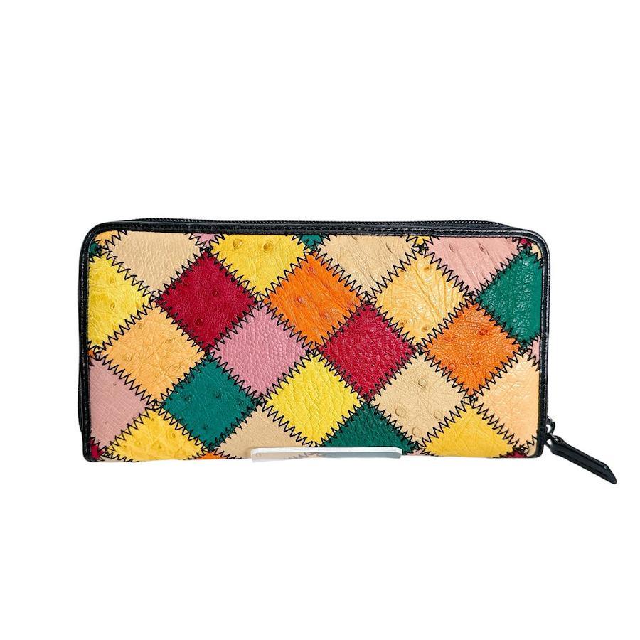 ☆パッチワークのオーストリッチラウンドファスナー長財布!豊富なカード用ポケットやセパレートされたお札入れなど収納力がとても高いお品です♪