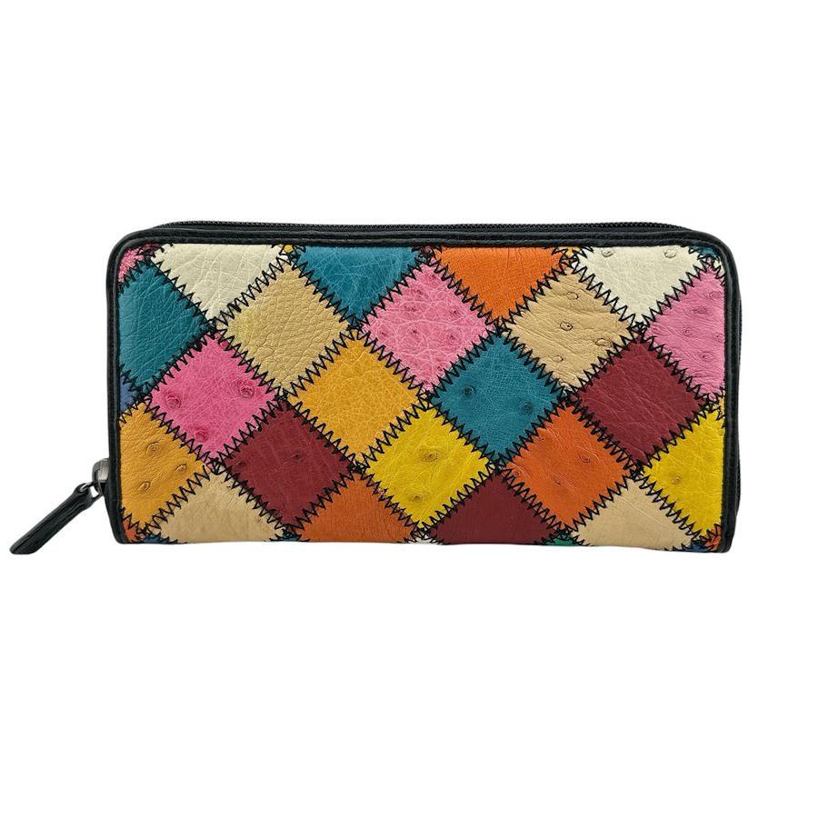 [New] Patchwork Multicolor Round Zipper LB-5055 Ostrich Multicolor Long Wallet ostrich [SS]