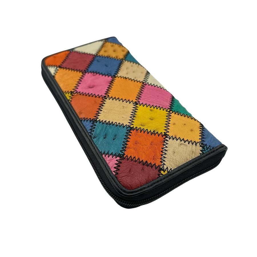 パッチワークのオーストリッチラウンドファスナー長財布です