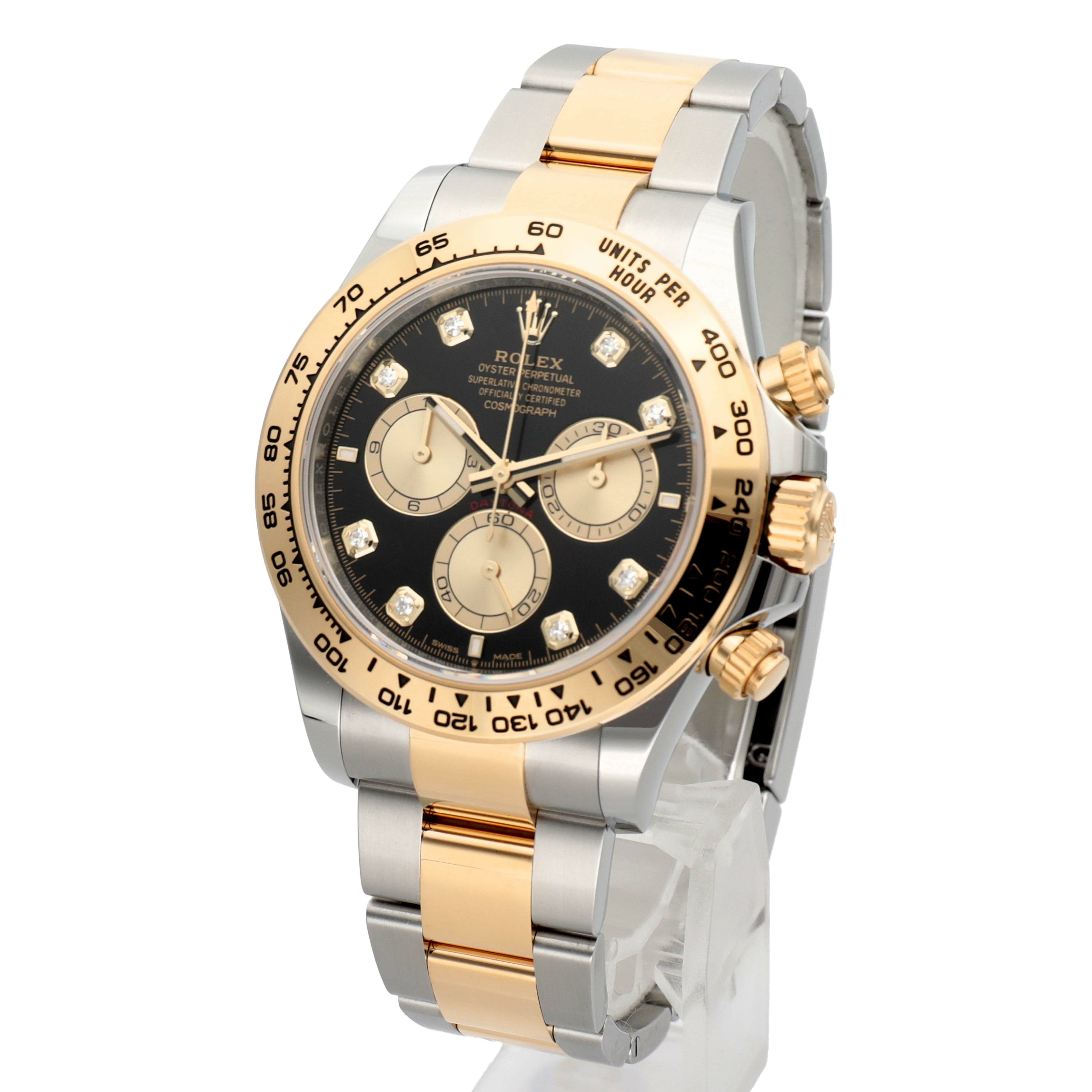 --------【商品スペック】--------お問合せコード:126503Gブランド:ロレックスシリーズ:デイトナケース素材:ステンレススチール×イエローゴールドベルト素材:ステンレススチール×イエローゴールドダイアルカラー:ブライトブラック/ゴールデンムーブメント:自動巻(Cal.4131)ケースサイズ:40mm(リューズ除く)防水:100mガラス:サファイアガラス仕様:クロノグラフ、スモールセコンド、30分積算計、60分積算計付属品:純正BOX、国際保証書(2025年10月)保証:購入日より3年保証メーカー参考価格:¥ 3,562,900-税込