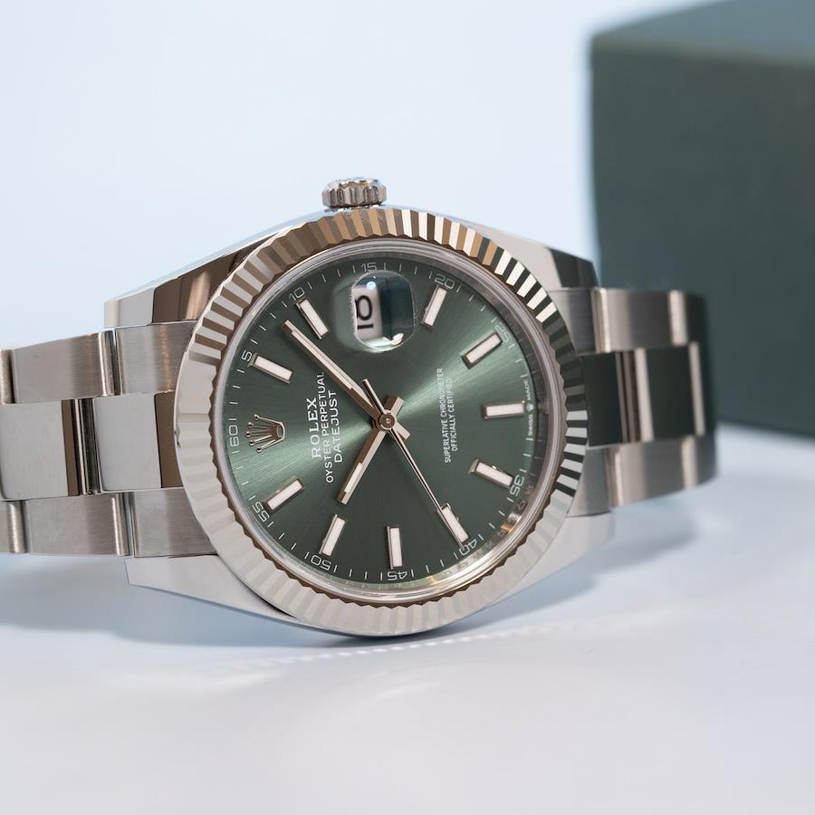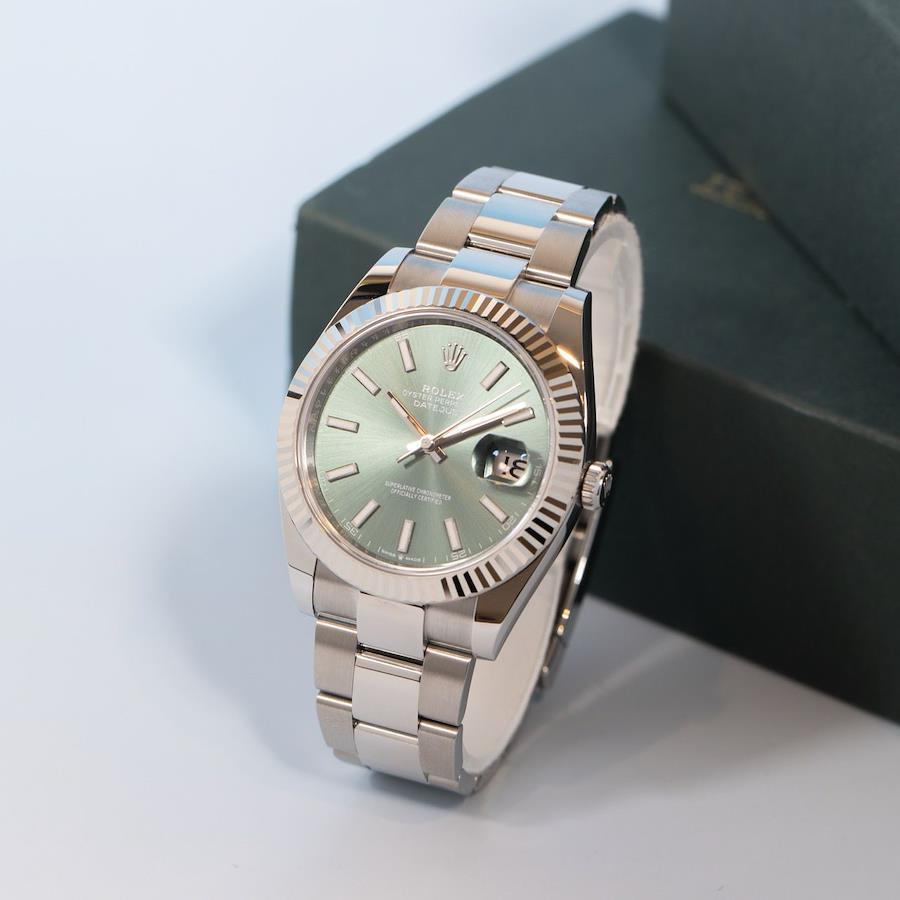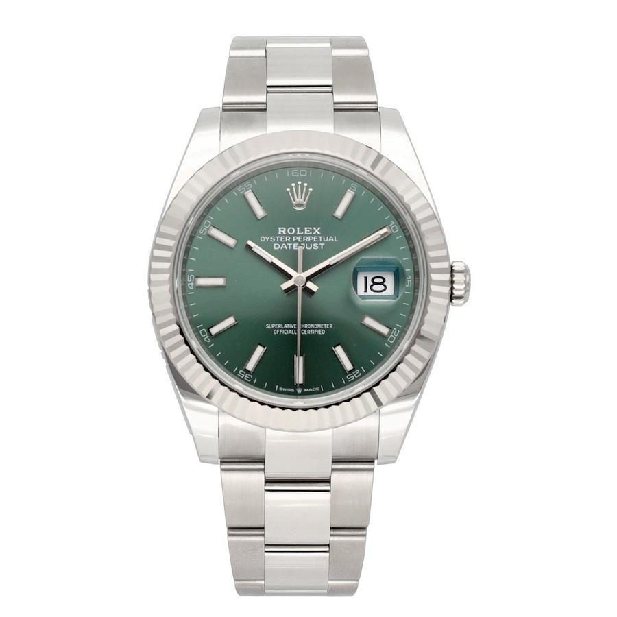 --------【商品スペック】--------お問合せコード:126334ブルーバージュビリーブランド:ロレックスシリーズ:デイトジャスト41ケース素材:ステンレススチールベルト素材:ステンレススチールダイアルカラー:ミントグリーンムーブメント:自動巻(Cal.3235)ケースサイズ:41mm(リューズ除く)防水:100mガラス:サファイアガラス仕様:日付表示、3針付属品:純正BOX、国際保証書(2025年12月)保証:購入日より3年保証メーカー参考価格:¥1,602,700-税込