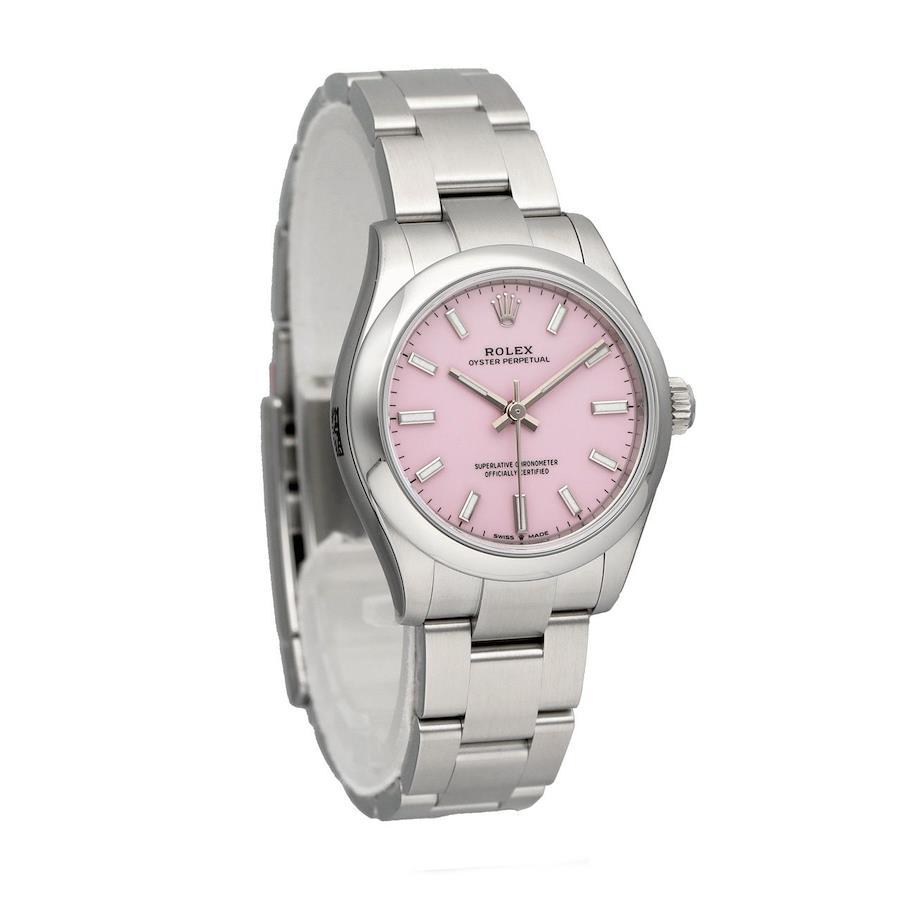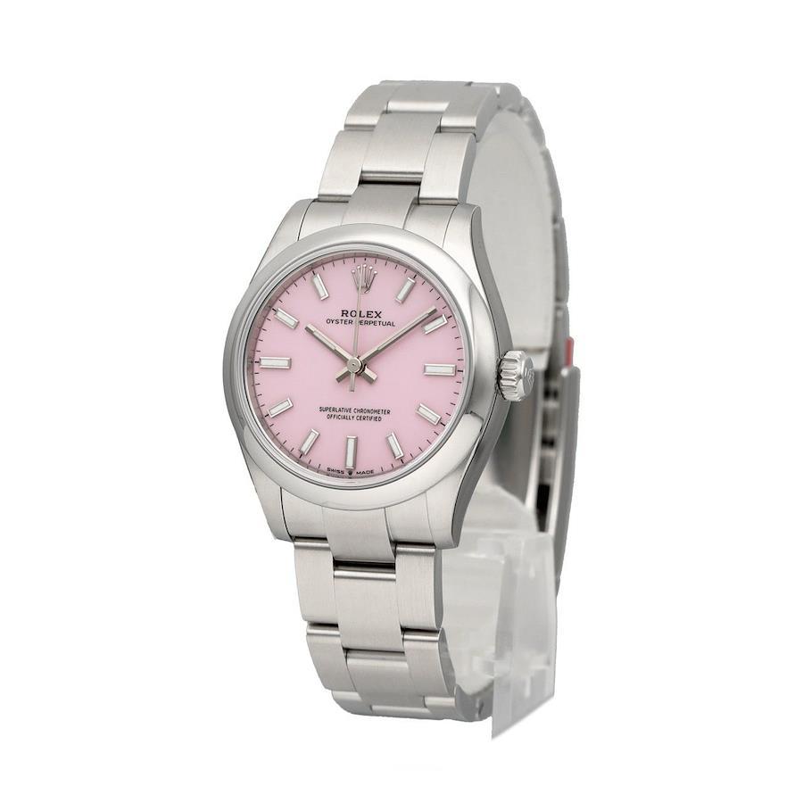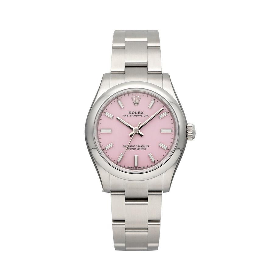 --------【商品スペック】--------お問合せコード:277200 キャンディーピンクブランド:ロレックスシリーズ:オイスターパーペチュアル31ケース素材:ステンレススチールベルト素材:ステンレススチールダイアルカラー:キャンディーピンクムーブメント:自動巻(Cal.2232)ケースサイズ:31mm(リューズ除く)防水:100mガラス:サファイアガラス仕様:3針付属品:純正BOX、国際保証書(2025年10月)保証:当店購入日より3年保証メーカー参考価格:¥871,200-税込