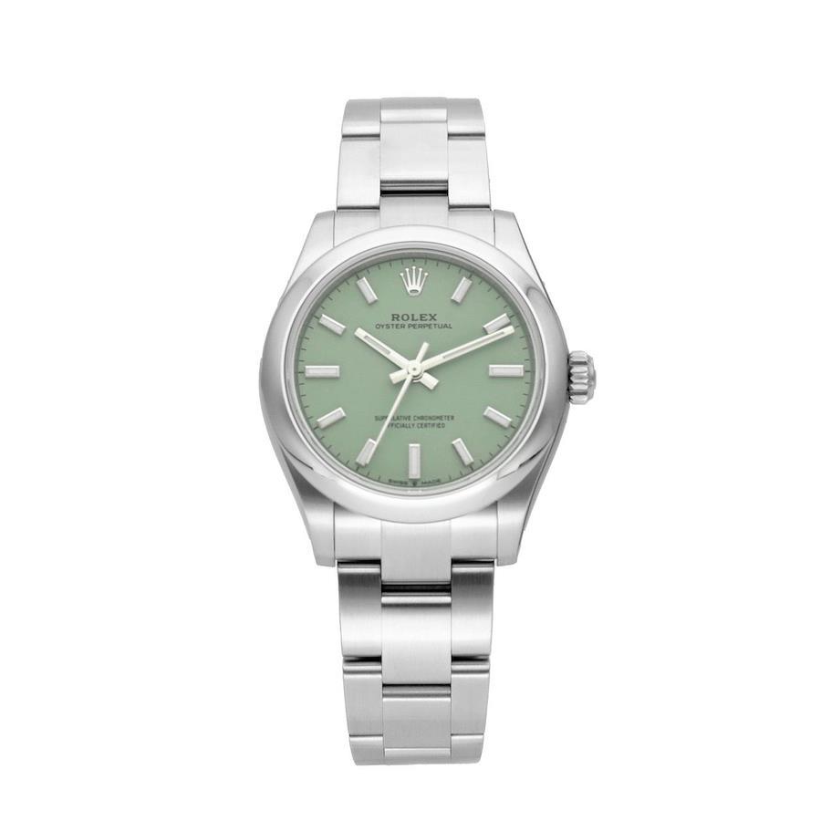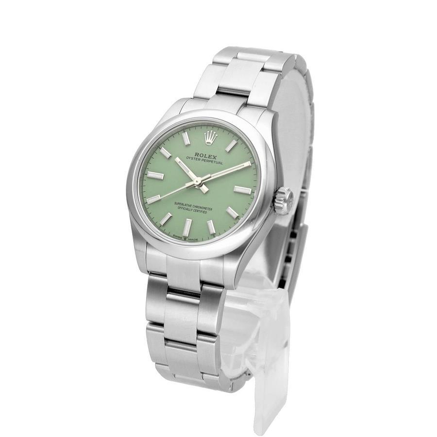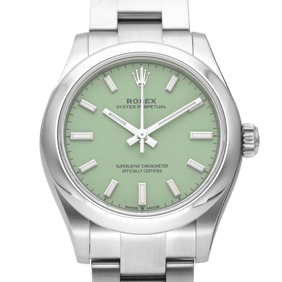 --------【商品スペック】--------お問合せコード:277200 ピスタチオブランド:ロレックスシリーズ:オイスターパーペチュアル31ケース素材:ステンレススチールベルト素材:ステンレススチールダイアルカラー:ピスタチオムーブメント:自動巻(Cal.2232)ケースサイズ:31mm(リューズ除く)防水:100mガラス:サファイアガラス仕様:3針付属品:純正BOX、国際保証書(2025年9月)保証:当店購入日より3年保証メーカー参考価格:¥871,200-税込