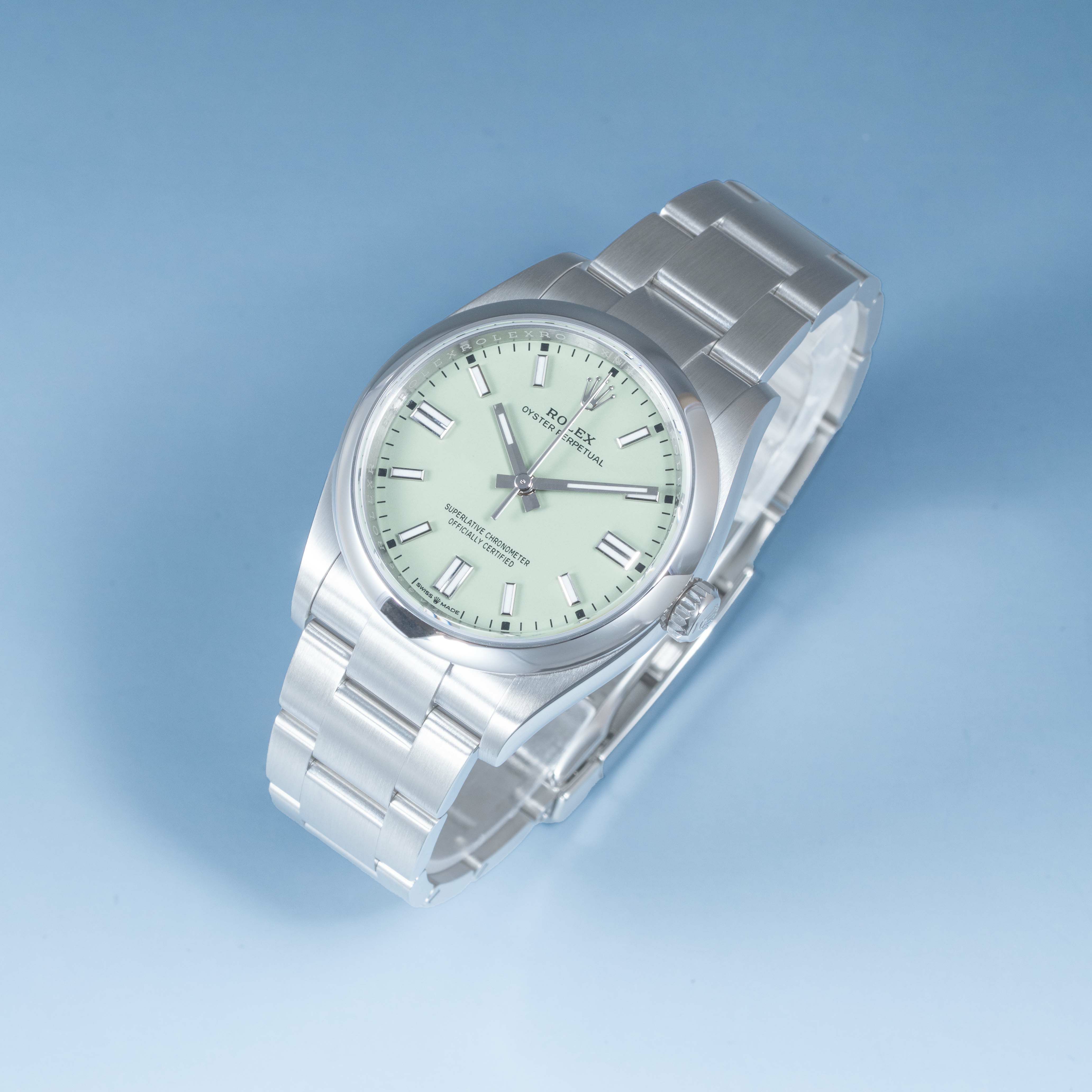 --------【商品スペック】--------お問合せコード:126000 ラベンダーブランド:ロレックスシリーズ:オイスターパーペチュアルケース素材:ステンレススチールベルト素材:ステンレススチールダイアルカラー:ラベンダームーブメント:自動巻(Cal.3230)ケースサイズ:36mm(リューズ除く)防水:100mガラス:サファイアガラス仕様:3針付属品:純正BOX、国際保証書(2025年10月)保証:当店購入日より3年保証