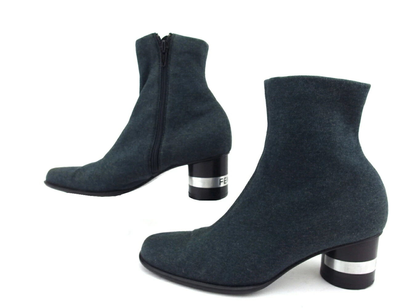 [New Year's Sale ★ Up to 50% Off] Fendi Boots, Gray x Black x Silver, Women's, Pre-owned, High-End Brand, Vintage