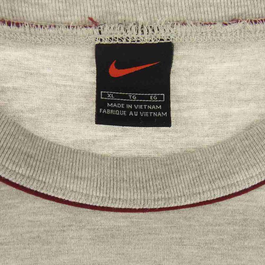 NIKE 90s-00s Striped Print Swoosh Logo Embroidered Short Sleeve T-Shirt Gray/Dark Red Men's [Used]