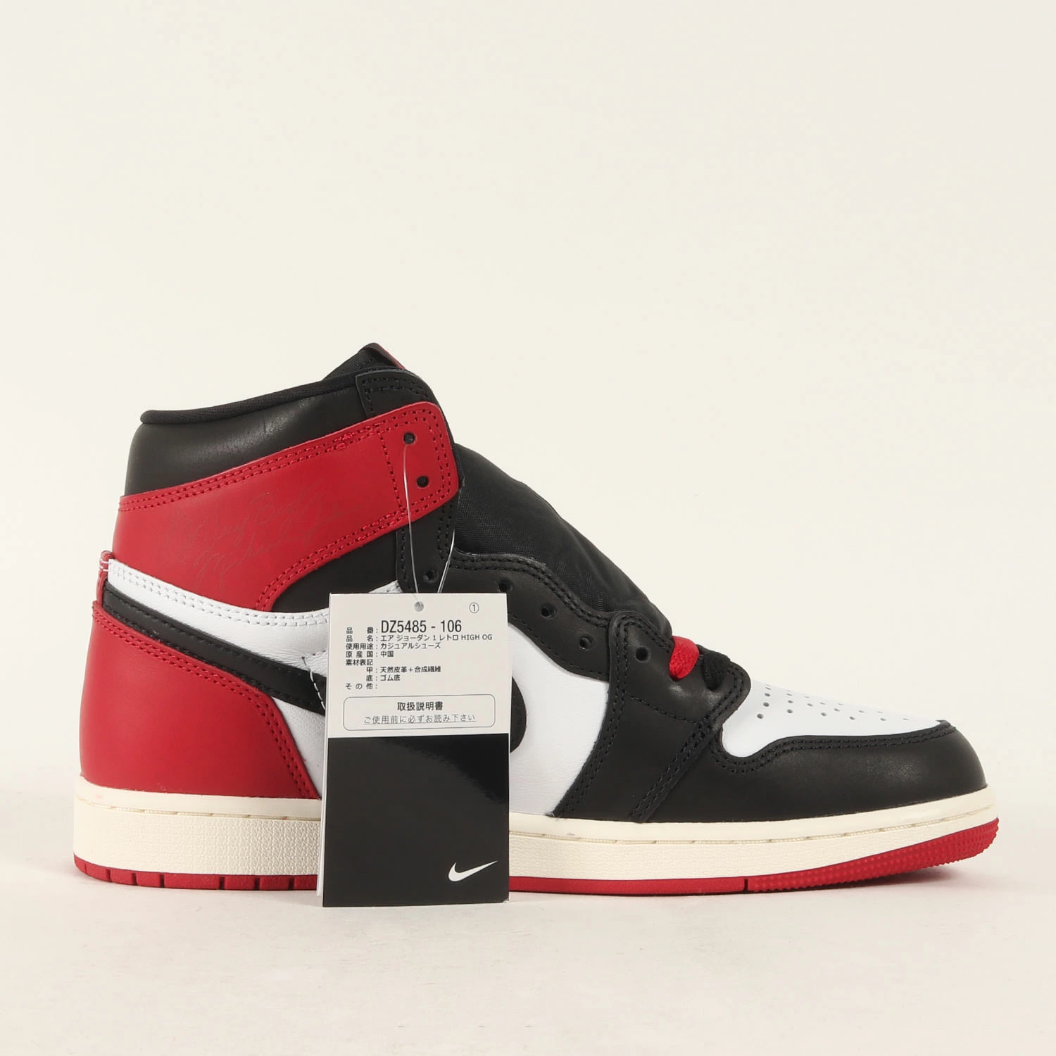 | 商品説明 | 1985年のオリジナルモデルを忠実に再現したOG仕様の“AIR JORDAN 1(エアジョーダン1)”です。今回はアンクル部分に”AIR JORDAN”ロゴと、マイケル・ジョーダンのメッセージロゴをデザインした、通称“BLACK TOE REIMAGINED”モデルになります。 |