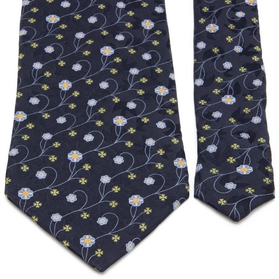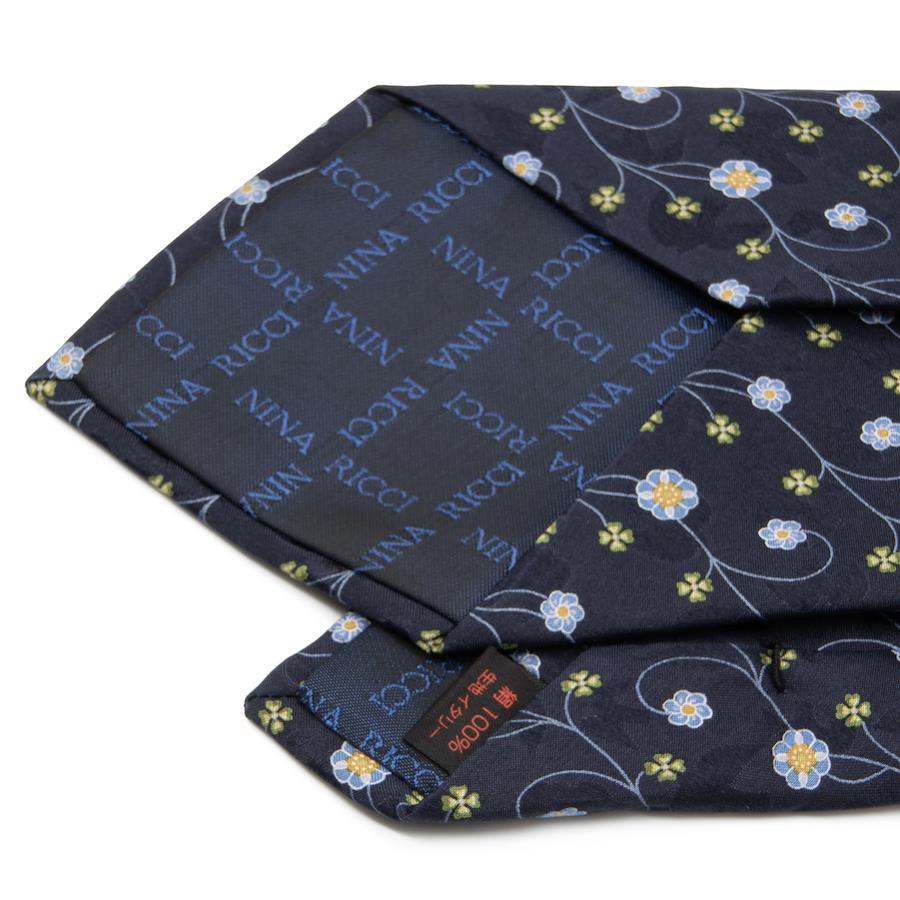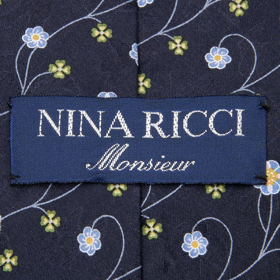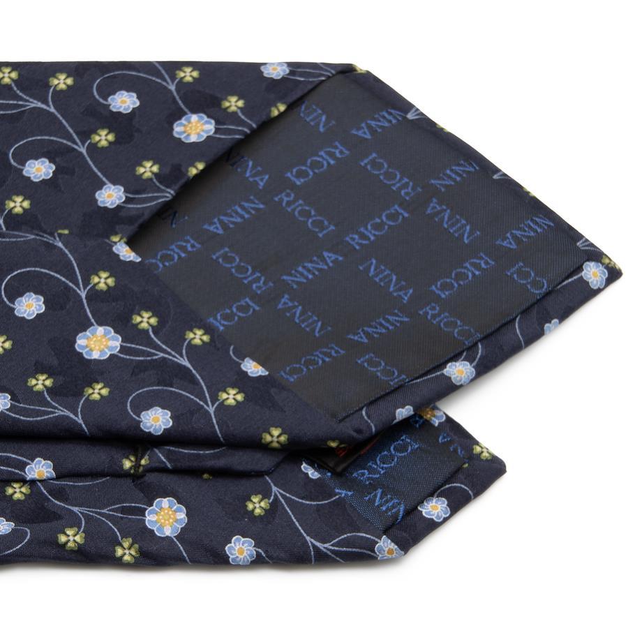 Nina Ricci tie, wide, printed, like new, for men and women, silk, blue, navy blue, light blue, green, orange, business, casual, floral, four-leaf clover, all-over print, logo, brand, rare, stylish, beautiful, P001