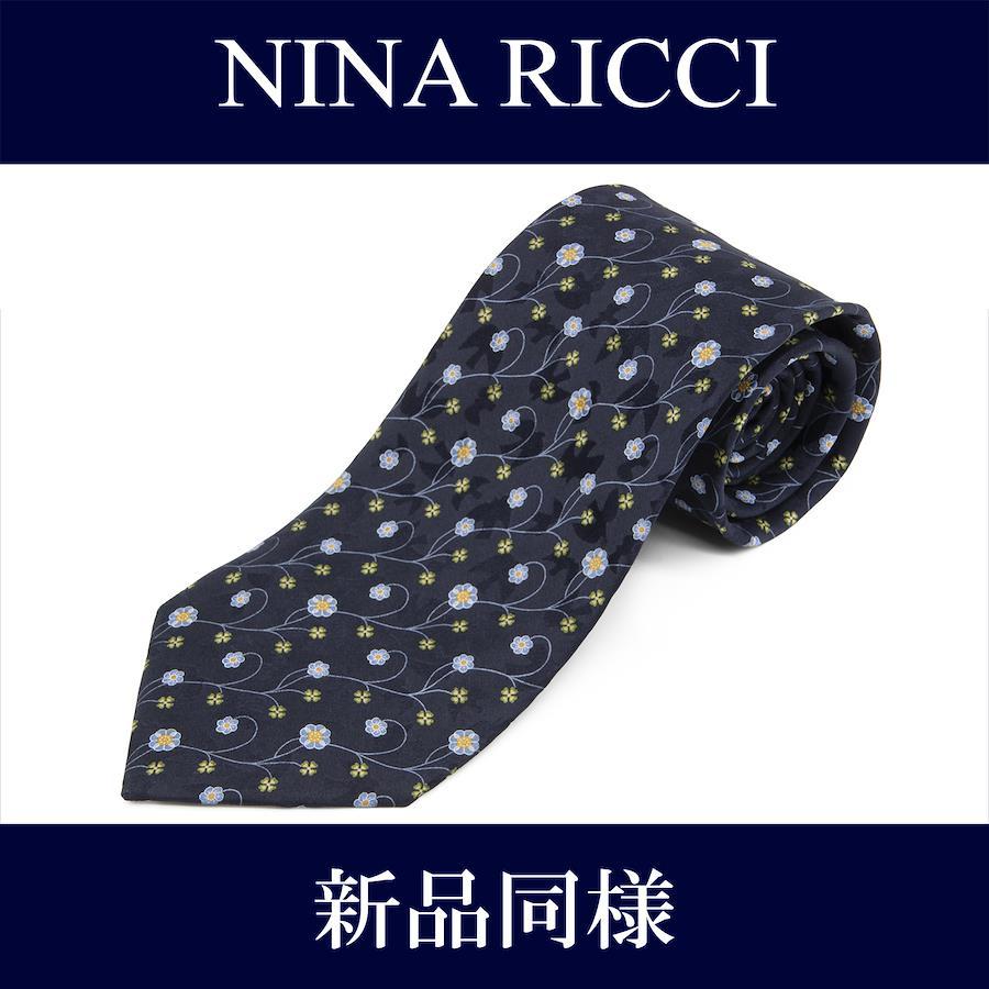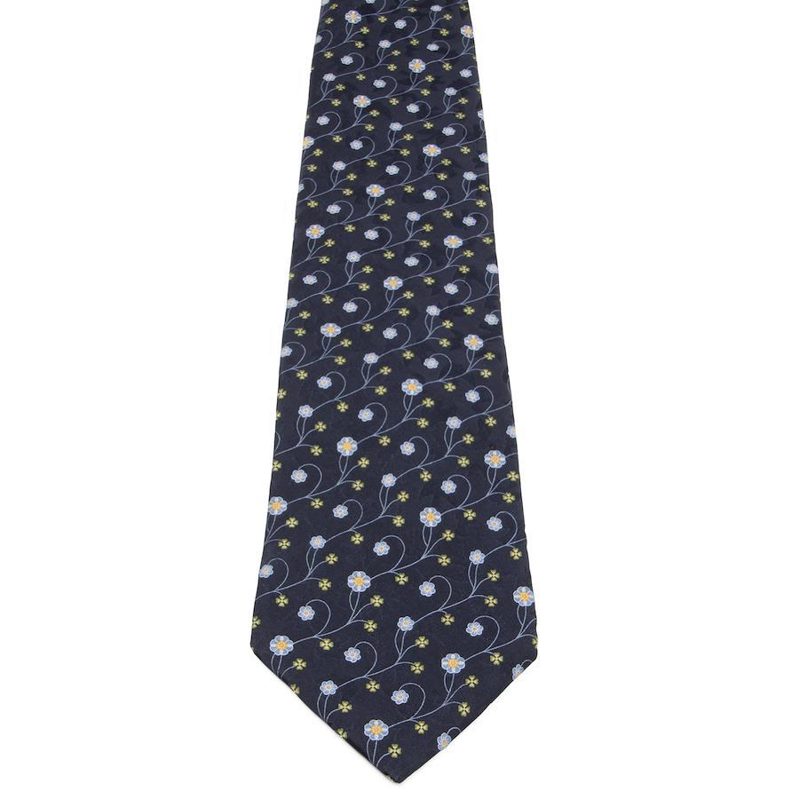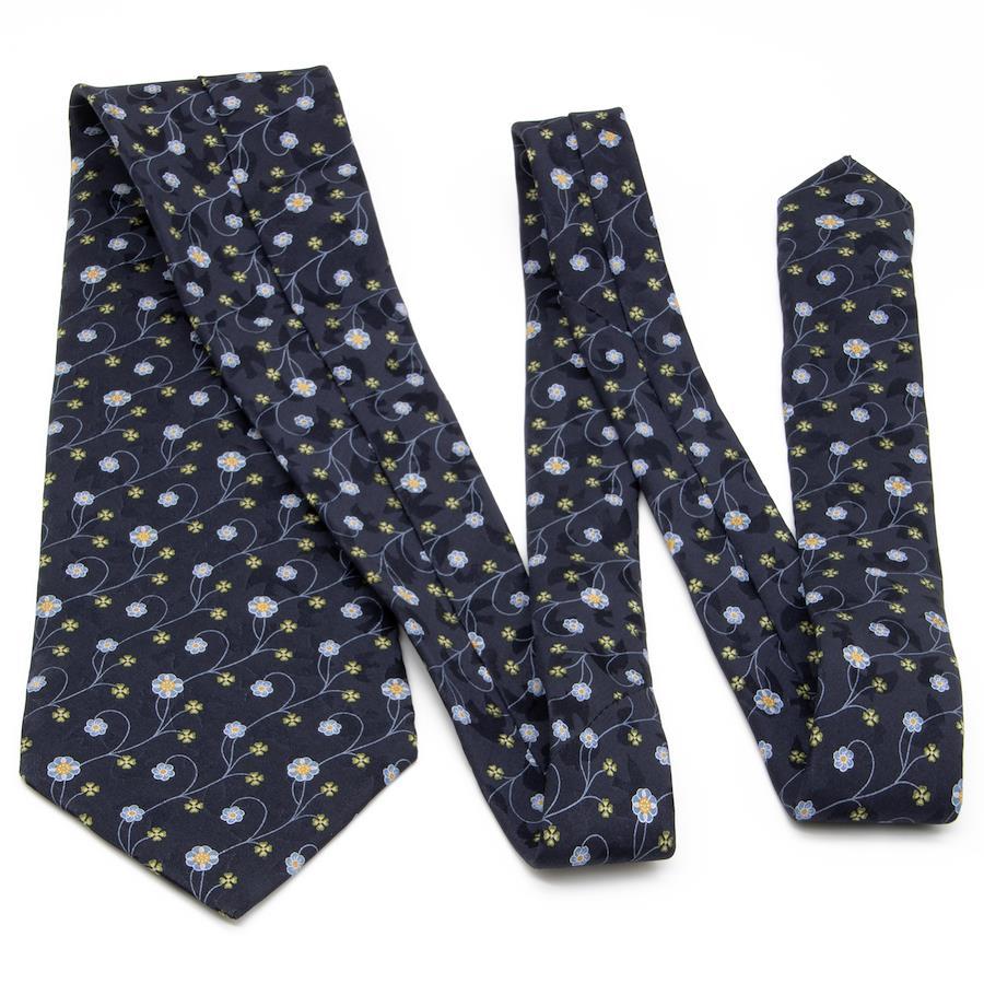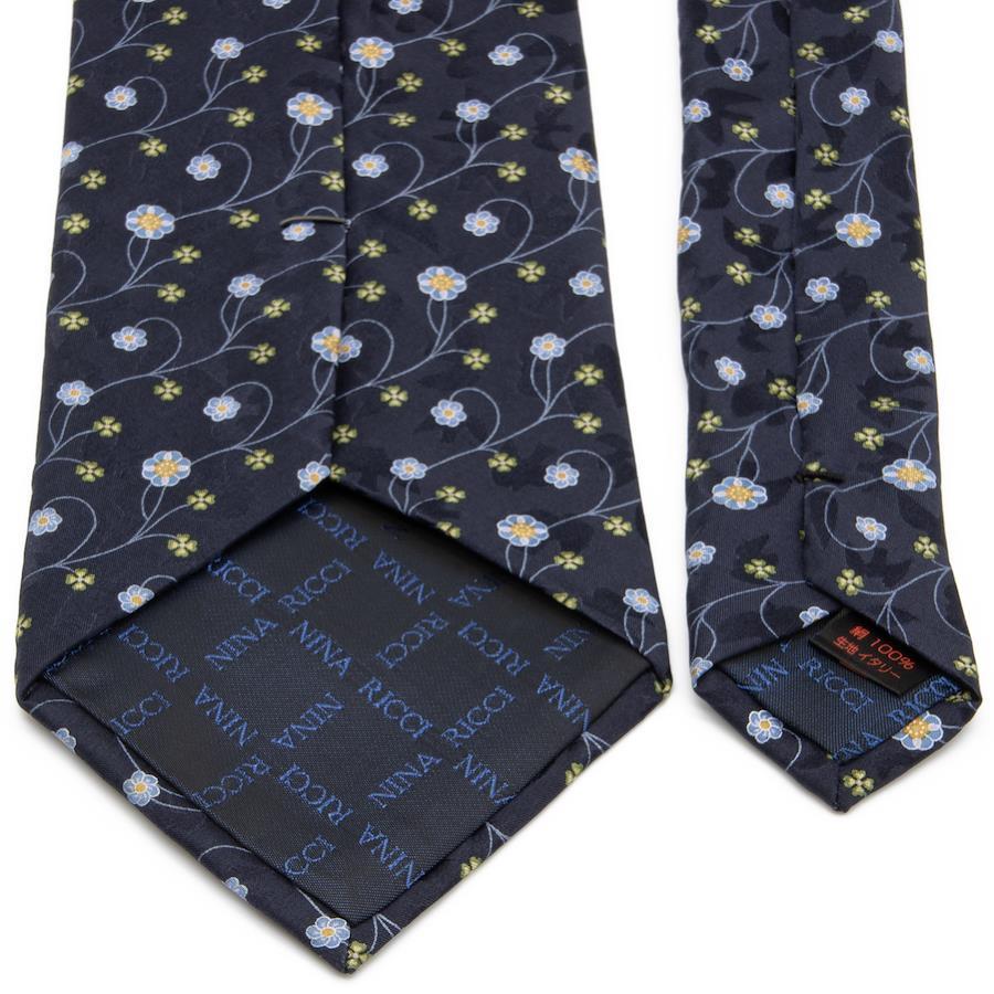 Nina Ricci tie, wide, printed, like new, for men and women, silk, blue, navy blue, light blue, green, orange, business, casual, floral, four-leaf clover, all-over print, logo, brand, rare, stylish, beautiful, P001