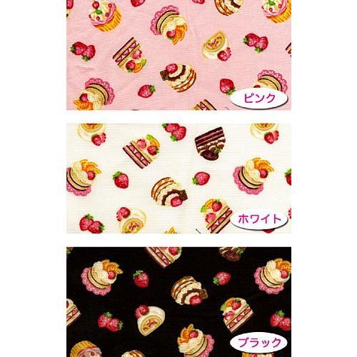 プチケーキ柄の生地の色は3色(ピンク・ホワイト・ブラック)あります。がま口のメッキ色はゴールドのみです。