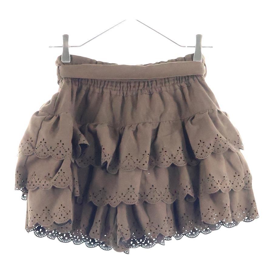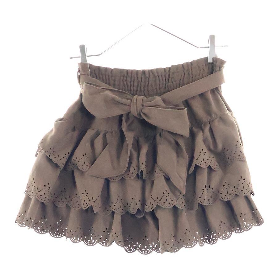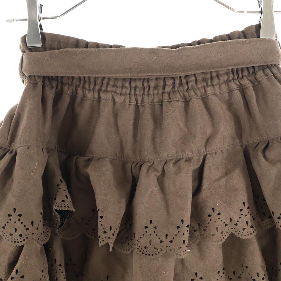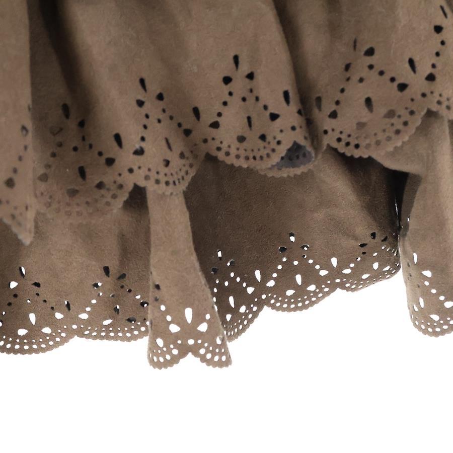 [モデル]ARROW アロー フェイクスウェード パンチング レース柄 ティアード ミニスカート ブラウン レディース