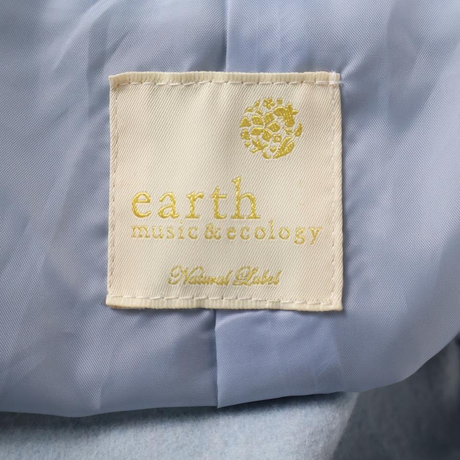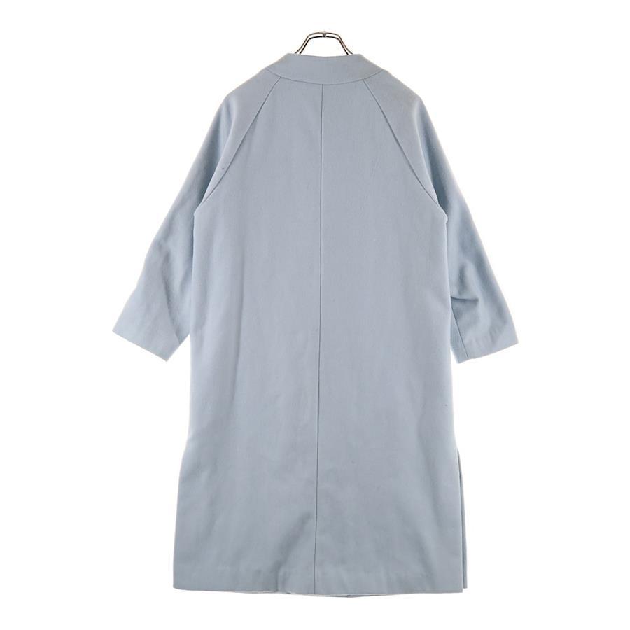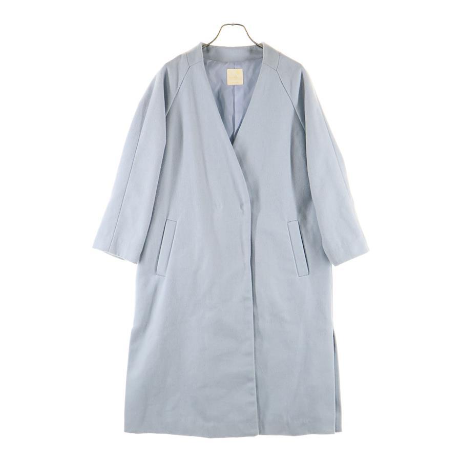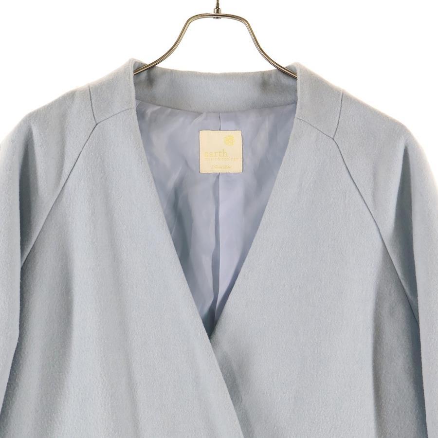 [モデル]アースミュージックアンドエコロジー ウール混 ノーカラー ダブルブレスト ロング コート ライトブルー レディース