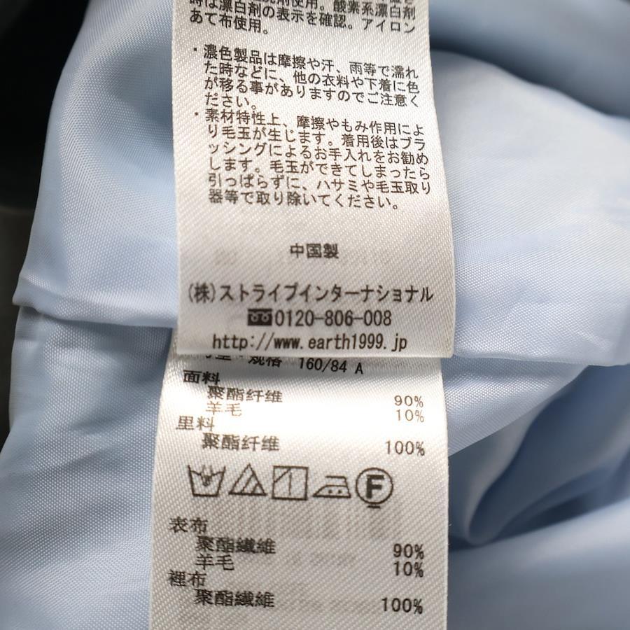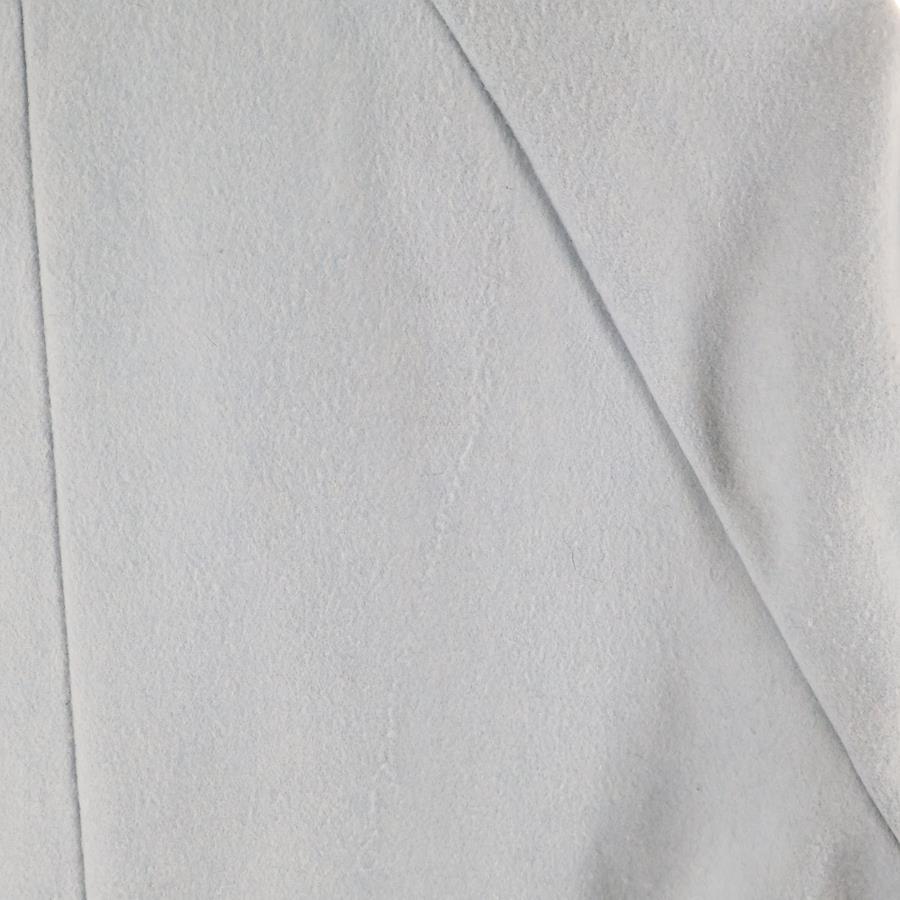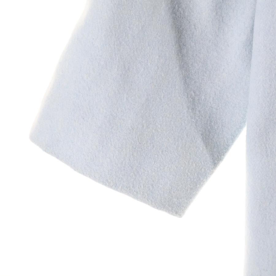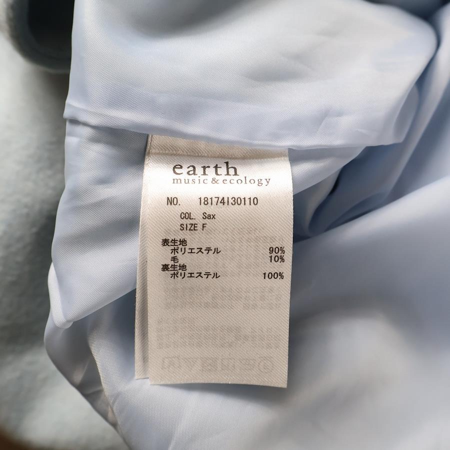 [モデル]アースミュージックアンドエコロジー ウール混 ノーカラー ダブルブレスト ロング コート ライトブルー レディース