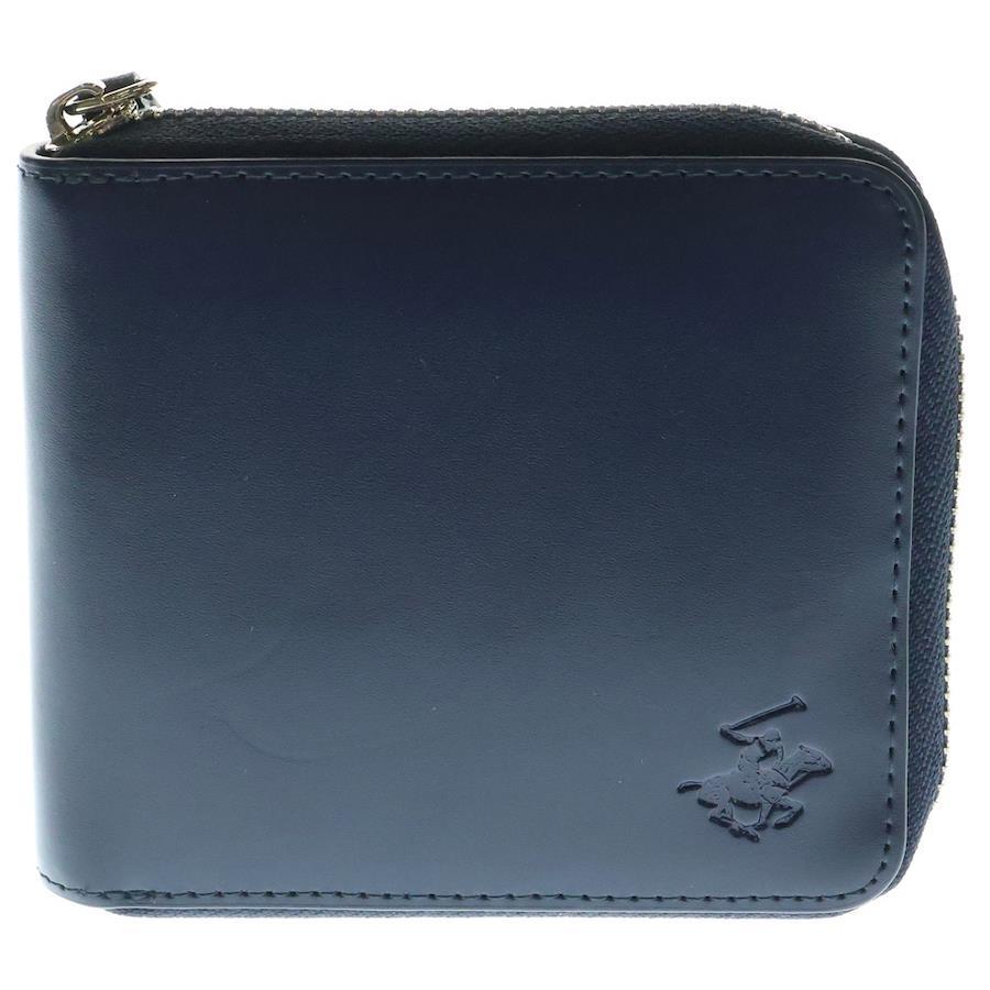 [モデル]ラウンドファスナー財布 ネイビー レザー