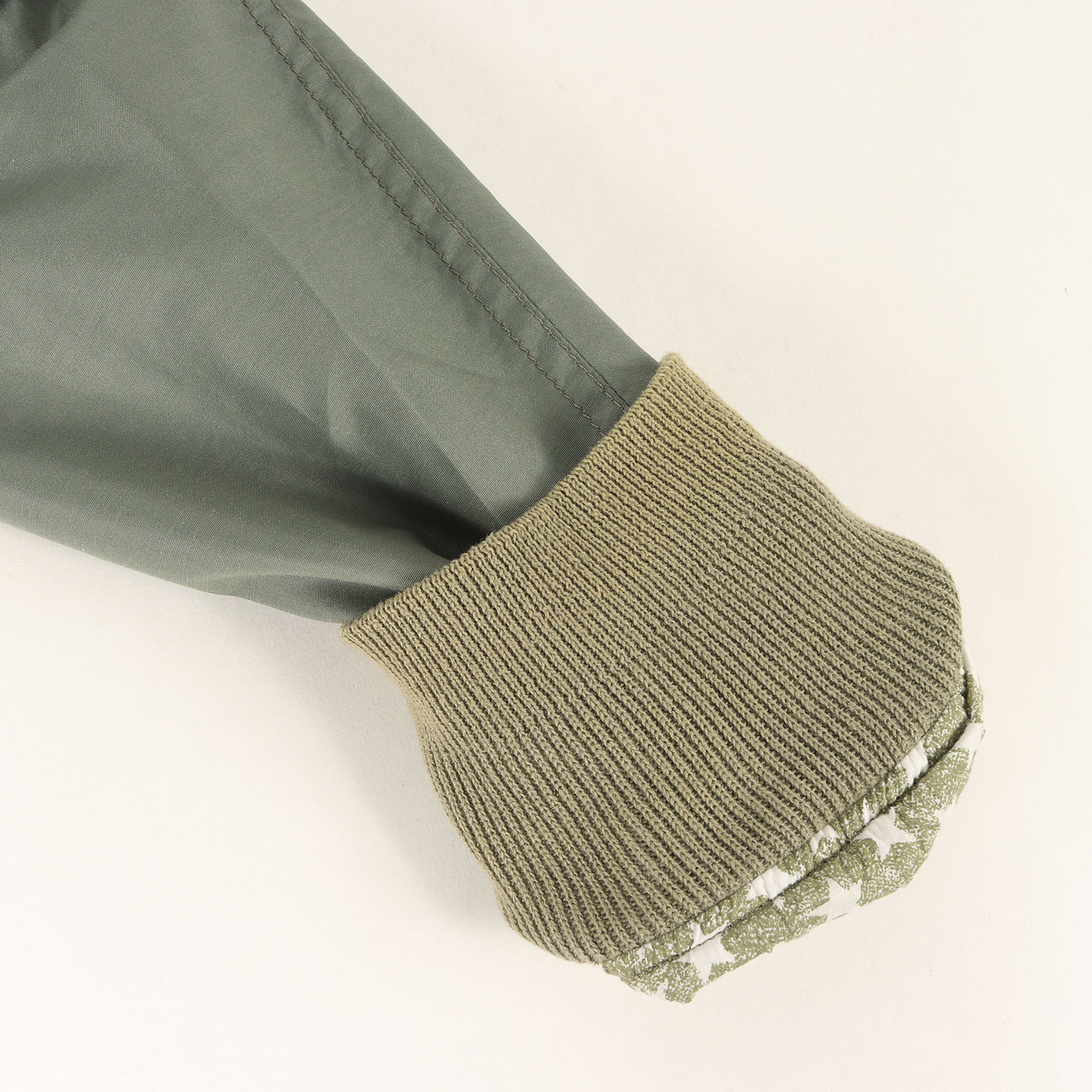| 商品説明 | ポリエステル/コットン混紡生地を使用した中綿なしのライトウェイトタイプのMA-1ジャケットになります。 |
