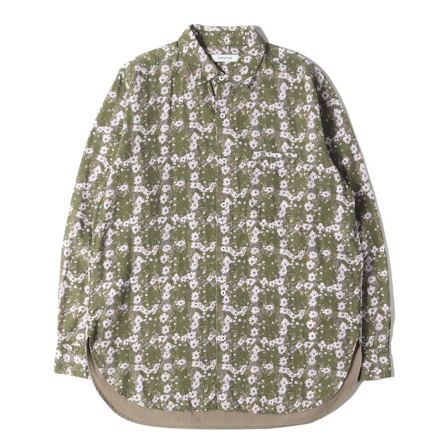 NONNATIVE LIBERTY Shirt, Size 2, Floral Print Cotton Long Shirt (GARDENER LONG SHIRT C/L BROAD) / Olive / Men's Casual Long Sleeve Shirt [Pre-owned] [K4615]