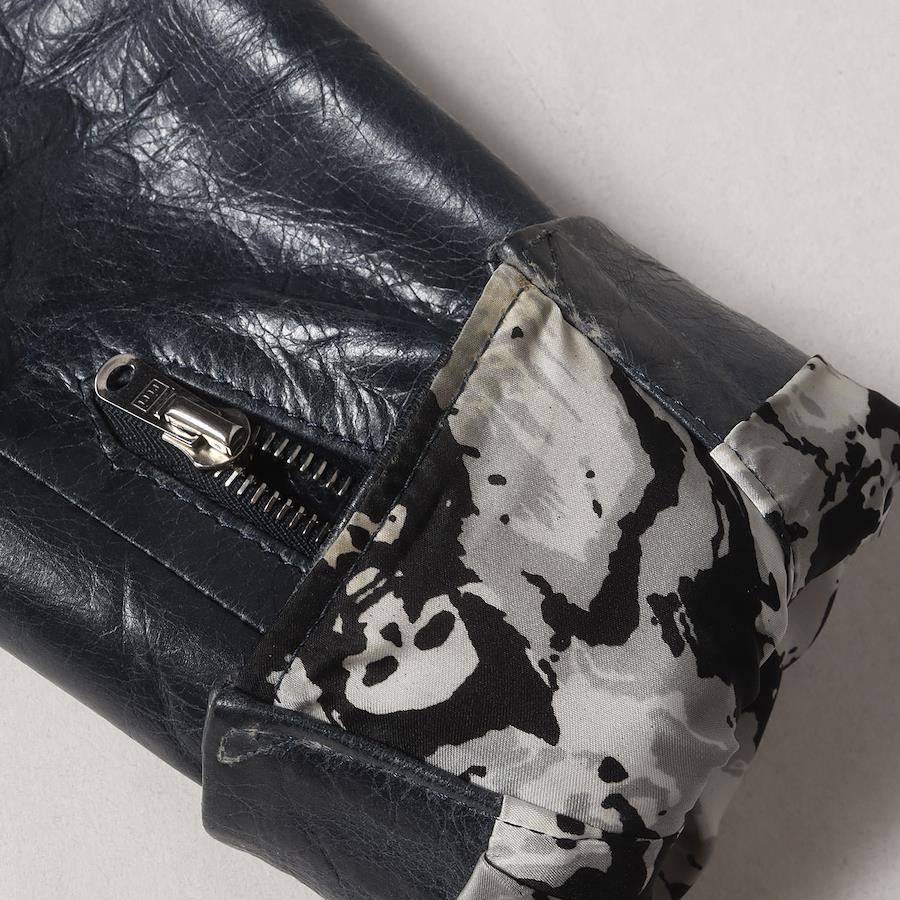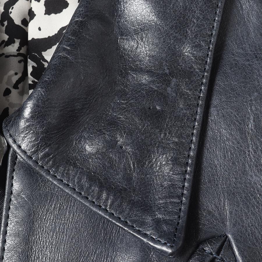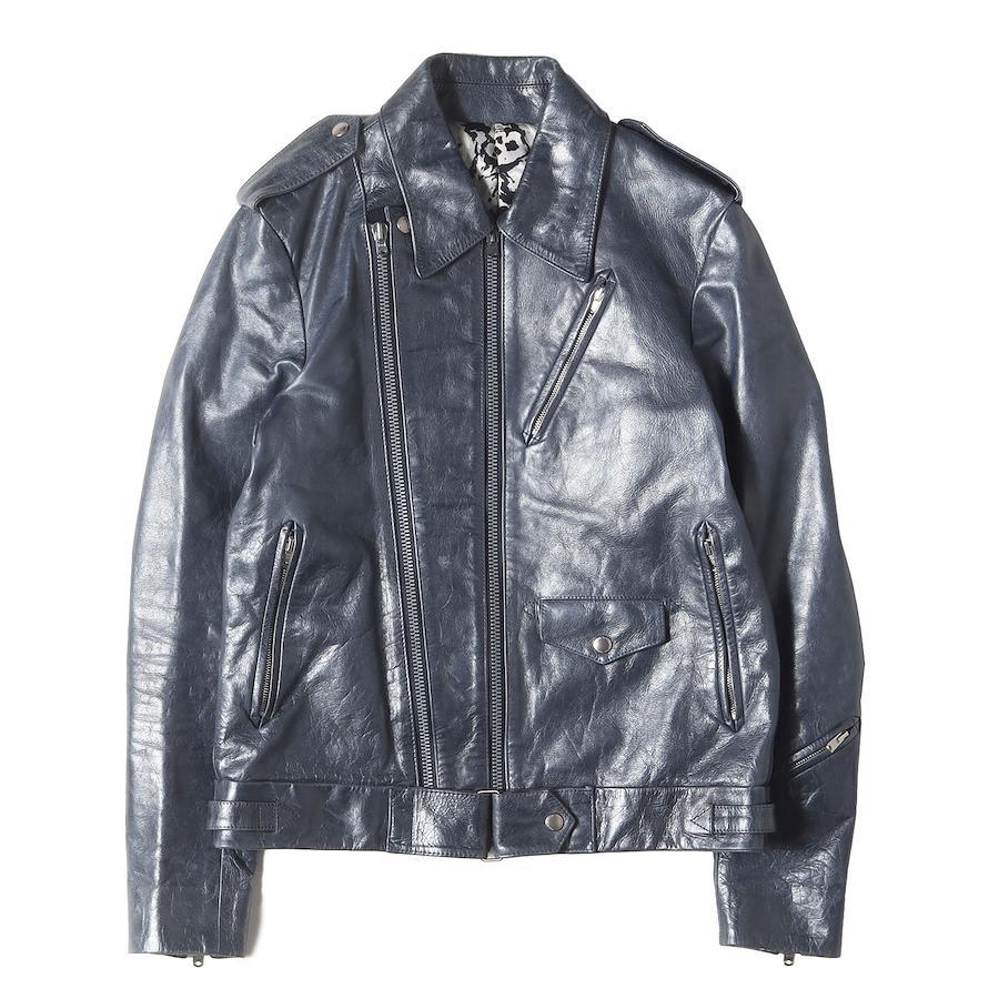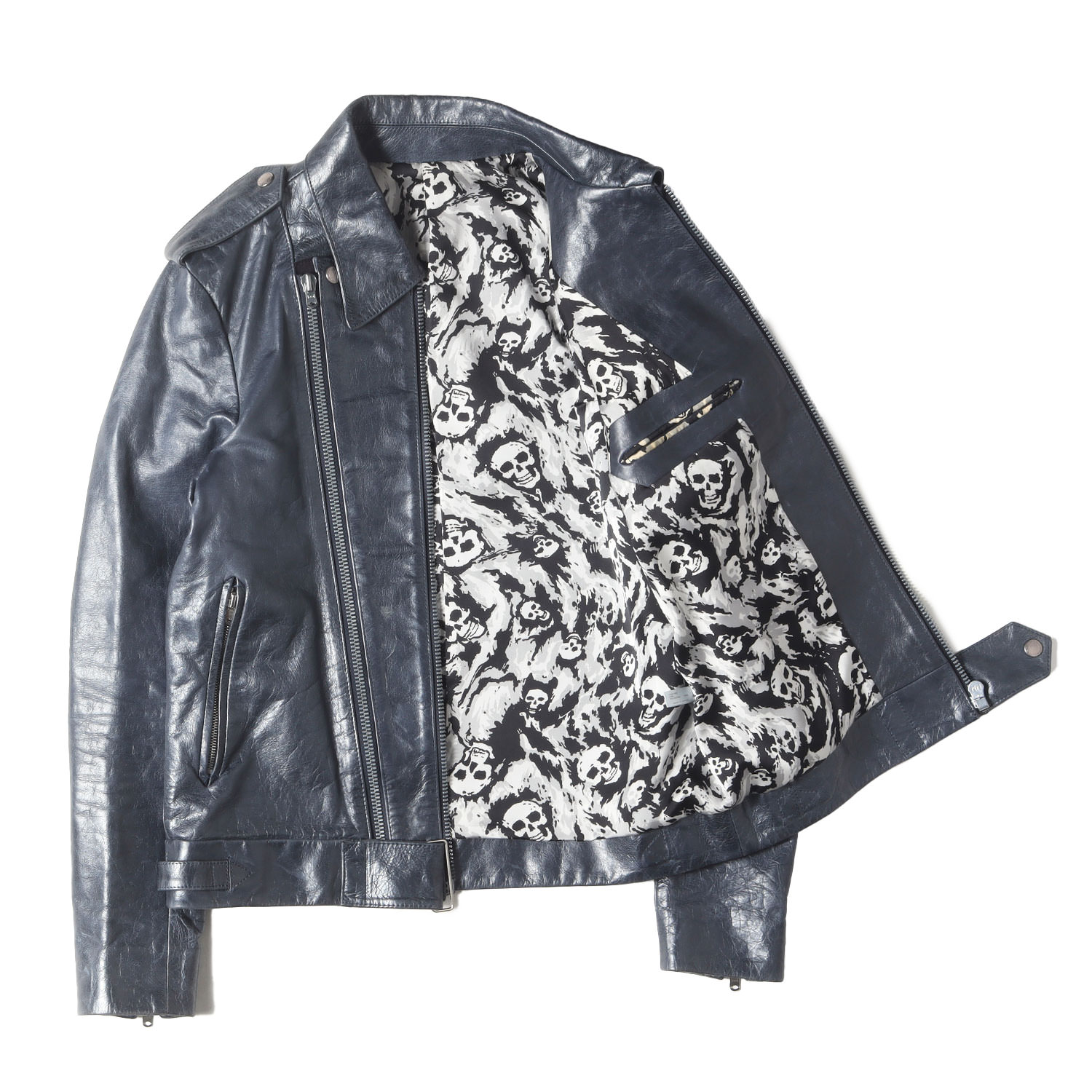 | 商品説明 | 通称“タイム期”と呼ばれる2001年春夏コレクション“TIME MIGRATION期”にリリースされたアーカイブアイテムのライダースジャケットです。ガンメタリックレザーを使用し、裏地をドクロ総柄であしらった一枚になります。 |