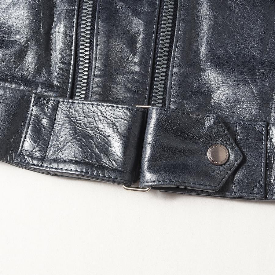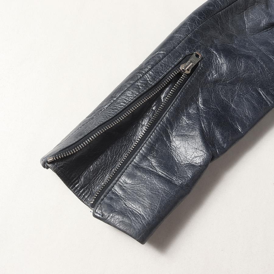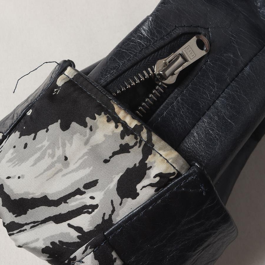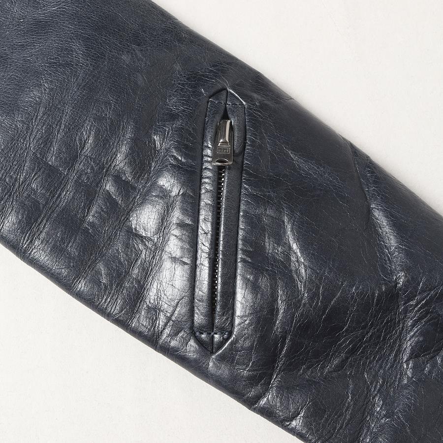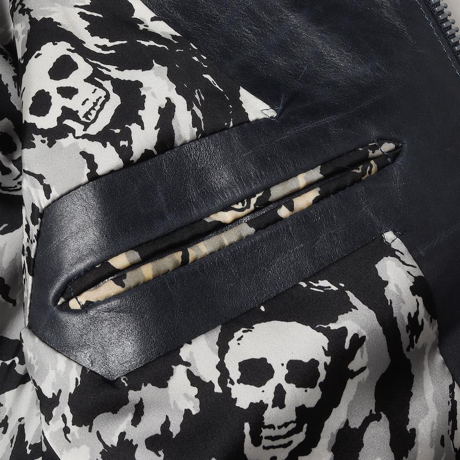 | 商品説明 | 通称“タイム期”と呼ばれる2001年春夏コレクション“TIME MIGRATION期”にリリースされたアーカイブアイテムのライダースジャケットです。ガンメタリックレザーを使用し、裏地をドクロ総柄であしらった一枚になります。 |