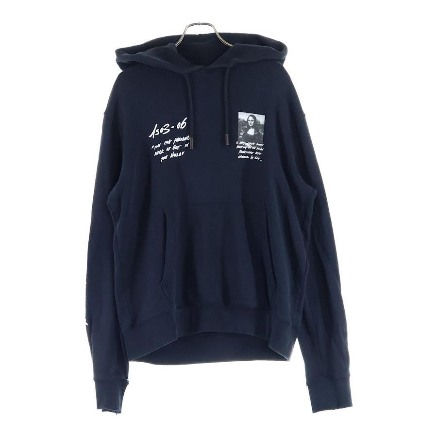 [モデル]19SS フロントモナリザプリント プルオーバーパーカー ブラック OMBB034S19003005