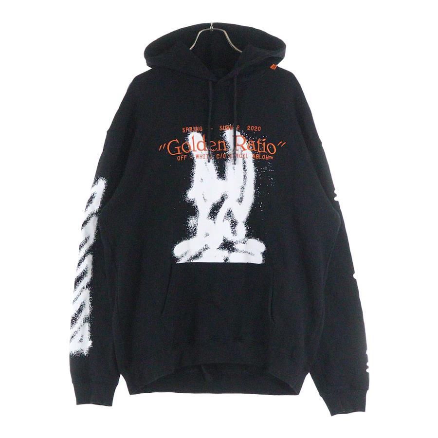 [モデル]20SS Golden Ratio 刺繍 スウェットパーカー フーディー ブラック OMBB009F 7601028