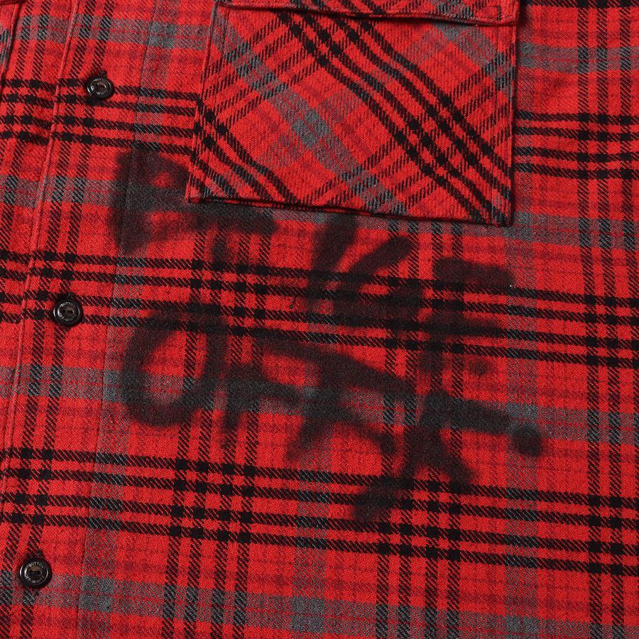 | 商品説明 | ヘビーウェイト生地を使用したオーバーサイズシルエットのチェックフランネルシャツです。フロントにスプレーロゴ、バックにグラフィックプリントがデザインされております。 |