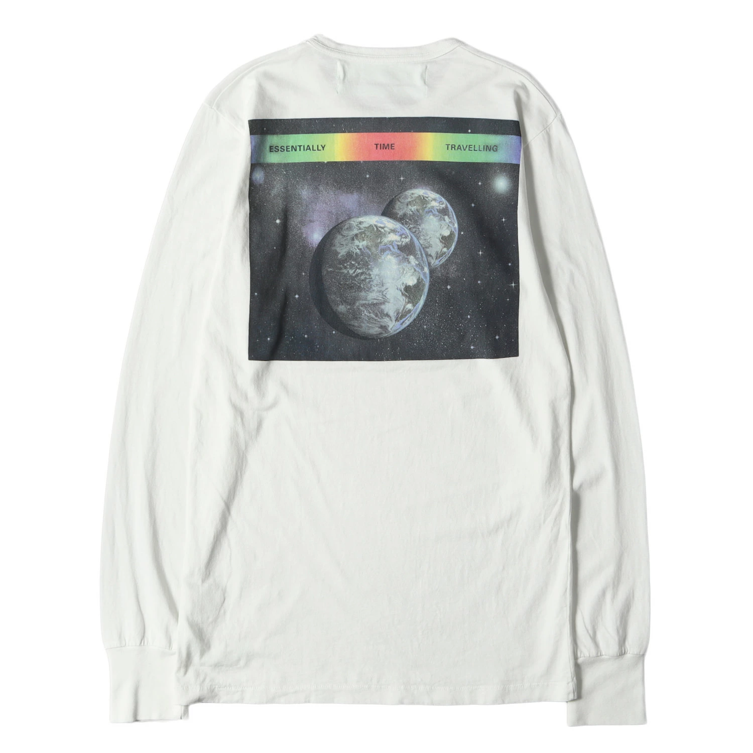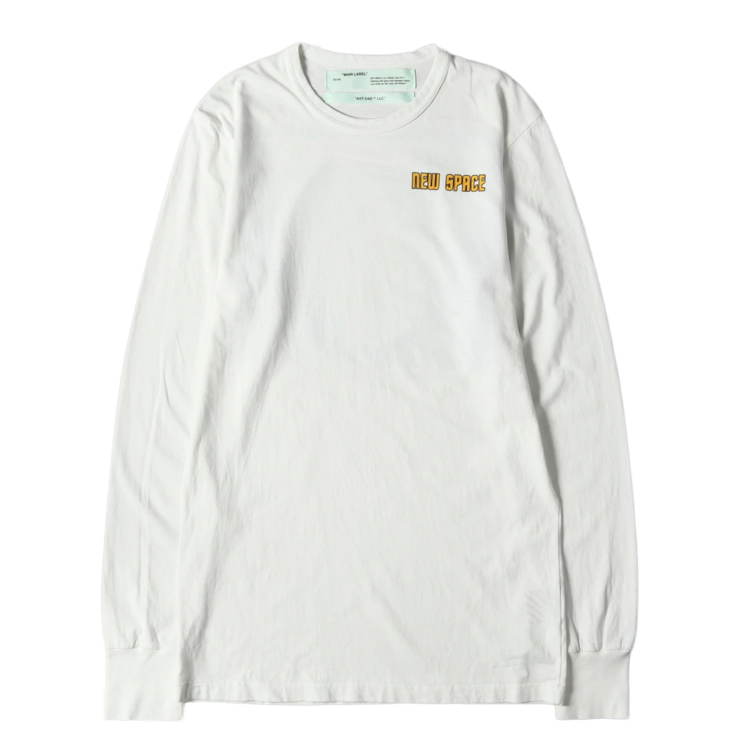 OFF-WHITE T-shirt, size unspecified (approximately S), ARTDAD NEW SPACE long-sleeve crew neck T-shirt, white, collaboration top, men's, pre-owned, K4616